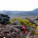 Par le GRR2 : Il débute également au parking et enjambe quelques coulées lisses en vieille peau d'éléphant (Photo 3). Du sable ou des petits lapilli comblent les intervalles entre ces plaques. Puis ce sont les premières pierres qui jonchent le sol et imposent de regarder où on pause les pieds (Photo 5). Des tunnels de lave à demi effondrés bordent le sentier (Photo 4). Le sentier passe au plus près de la Caverne du Chisny puis plus loin d'une chapelle rustique constituée d'un empilement de plaques de basalte (Photo 7). Il monte et descend au gré du relief sans jamais être difficile. Le Piton Rouge sur la droite grossit de plus en plus et le sentier rencontre quelques fois la piste. Les vues sur le sommet de la Fournaise sont fréquentes et on arrive au bord du rempart pour profiter le l'ensemble du panorama (Photo 9) ou des petits cratères rougeoyants dans l'enclos (Photo 10). Après le Piton Rouge (Photo 12) le sentier descend mais sans qu'on remarque trop cette faible pente. La végétation est de plus en plus rase (Photo 11) et les cailloux du sol alternent avec les parties terreuses, sableuses et parfois boueuses (Photo 15). Il frôle de plus en plus l'enclos (Photo 16) et il est déjà très agréable de profiter de la vue sur la fournaise ou des fumées de l'éruption en cours si c'est le cas. Après quelques portions de sentier agréables et droites (Photo 18) on arrive enfin, également en 90 minutes, au point d'observation. Certains marcheurs grimpent à droite sur le Piton de Bert, d'autres se mettent au plus près du bord de la falaise (Photo 22).