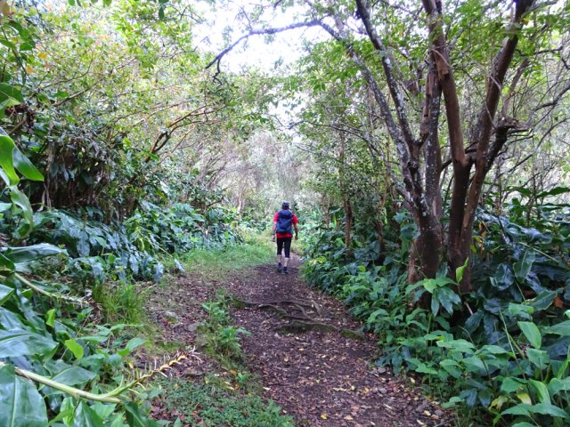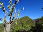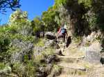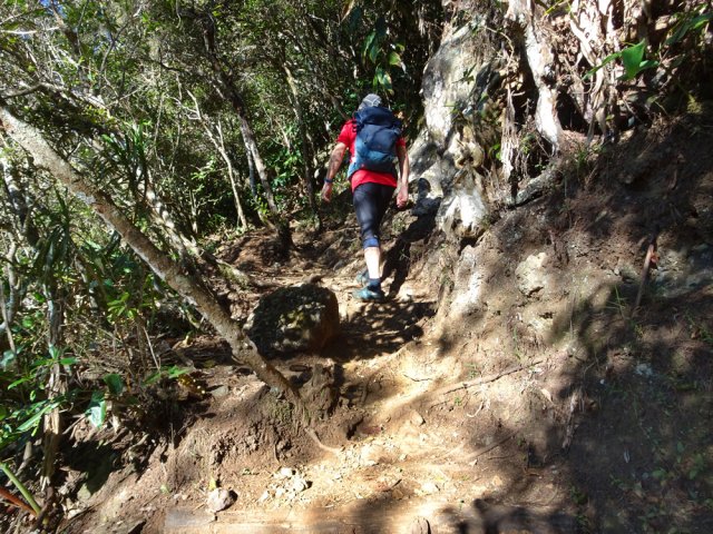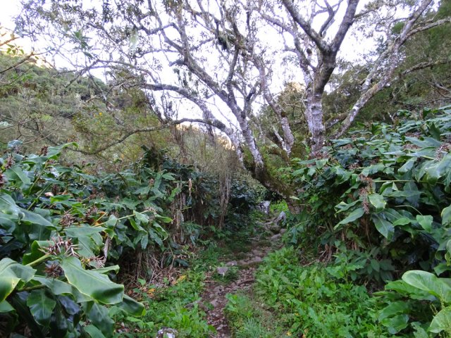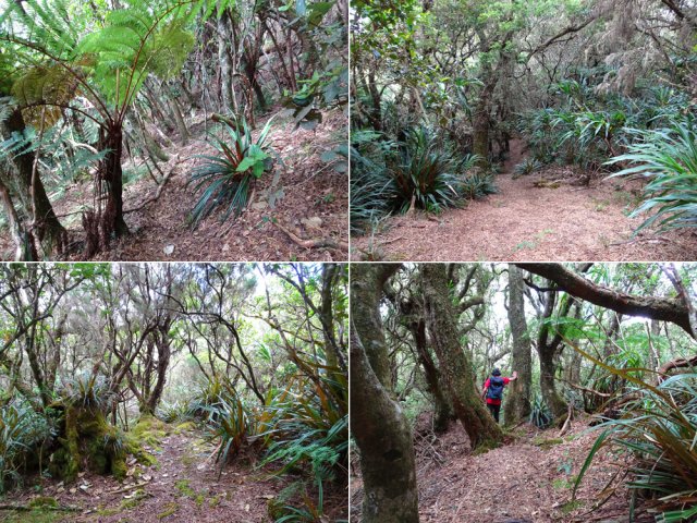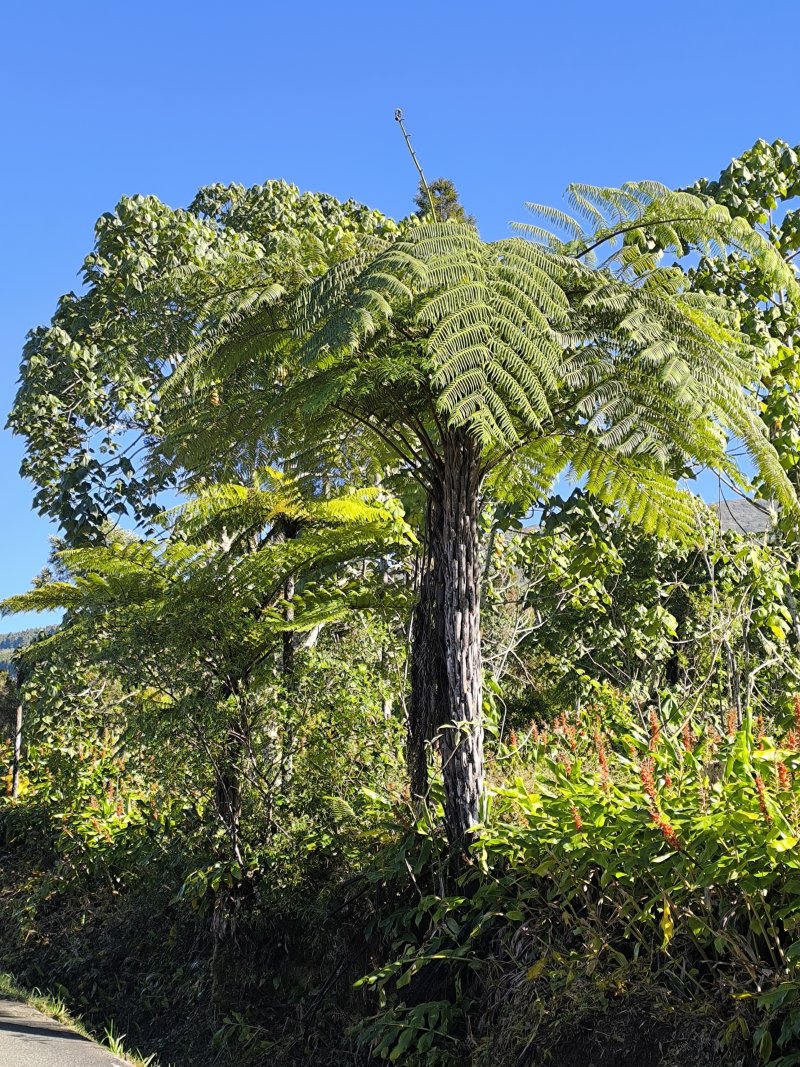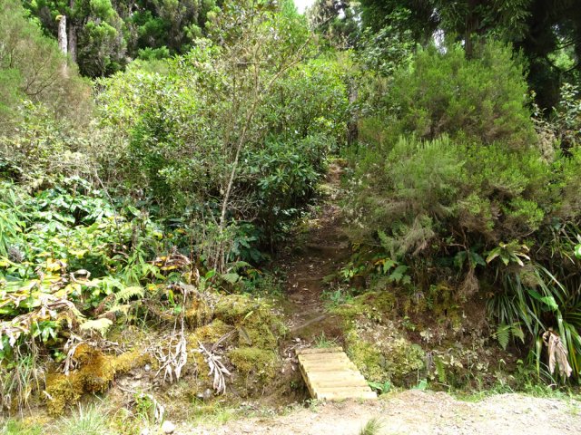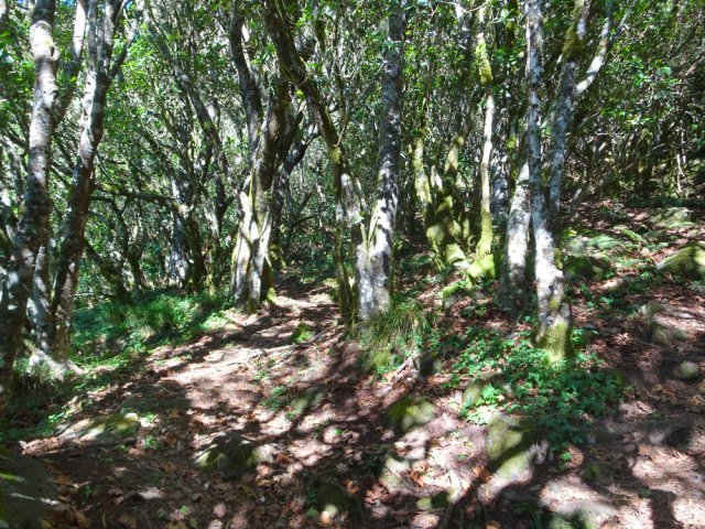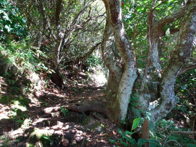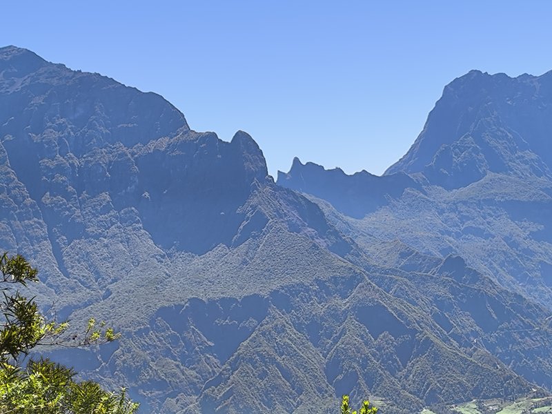 La randonnée débute à la grande aire de pique-nique fleurie érigée le long de la Route Forestière des Makes aux environs du Bras Patates. On a rencontré déjà d'autres aires aussi fleuries depuis les Makes mais plus petites. Celle-ci, de plusieurs hectares, est très bien entretenue et fleurie toute l'année. On peut commencer à marcher sur n'importe quel sentier puisqu'ils finissent tous par se rejoindre en aval près d'une piste de service. Poursuivre en faible descente jusqu'au premier croisement de sentiers, quelques mètres avant de franchir la ravine (Photo 1). Partir à gauche et longer le Bras Patates, tout proche, qu'on ne peut apercevoir au fond du talweg à cause de la végétation. Le sentier dans les bois de couleurs comporte quelques cailloux, des racines et surtout beaucoup de longoses (Photo 2). Plus loin, il est droit et assez plat mais parfois boueux, toujours dans les longoses. Un petit raidillon à mi-pente, assez caillouteux, ralentit à peine la progression (Photo 3). On parvient en une trentaine de minutes au premier croisement occupé par un belvédère en bois pour de belles vues sur le Cirque de Cilaos (Photo 4). On ne se lasse jamais de ce magnifique spectacle qu'on retrouvera souvent dans la montée. Entamer sur la gauche le sentier qui monte vers les antennes de la Fenêtre des Makes. Il est assez étroit, rocailleux et envahi de racines sur une pente souvent forte (Photo 5). Il grimpe en deux séries de lacets serrés séparés par un replat permettant à peine de souffler. Les paysages vers le cirque sont possibles depuis le sentier en bord de rempart (Photo 6). En se retournant, on profite également de vues sur le Piton Cabris (Photo 7). Les antennes et leurs petits bâtiments signent la fin de cette première montée sérieuse. Nouveau belvédère pour admirer le cirque déjà bien éclairé par les rayons de soleil (Photo 8). Après avoir repéré les principaux sommets, îlets ou villages, remonter tout le long de la barrière et poursuivre vers le Petit Mapou par la route de La Fenêtre puis en obliquant aussitôt à droite sur une large piste dans les cryptomerias (Photo 9). La pente est correcte et la marche facile malgré les racines de ces grands conifères (Photo 10). Plus haut les arbres ont disparu, coupés et aussitôt remplacés par les d'envahissantes (Photo 11). On frôle l'unique cryptomeria laissé par les forestiers et l'on regrette qu'il n'y en ait pas plus (Photo 12). On côtoie, tout au long de la montée, les troncs souvent empilés en train de pourrir. L'absence de cryptomerias permet de voir jusqu'à la côte à peine cachée par la Chaîne du Bois de Nèfles. Si la déforestation est agréable pour admirer les panoramas, il en est autrement de l'occupation des sols après la coupe. Toutes sortes d'envahissantes prennent possession des sols qui ne tarderont pas à se recouvrir de longoses. Les bois de couleurs prennent le relais avec une majorité de mahots et des mapous qui ont donné leur nom au petit piton, tout proche (Photo 14). Le sentier ombragé est assez facile avec marches, portions larges souvent bordées de beaux spécimens (Photo 15). L'humidité à cette altitude favorise la pousse des mousses et lichens dont les longues barbes de Jupiter. On rencontre plusieurs bifurcations. Toutes finissent sur le sentier principal et il est possible d'emprunter celui que l'on veut. L'itinéraire présenté utilise chaque fois le sentier partant sur la droite au plus près du rempart qu'on ne voit pas en raison de la forêt. Après un dernier point de vue sur Cilaos et le Gros Morne qui se rejoint en trente mètres, la montée reprend avec quelques raidillons (Photo 16). La pente cesse au col du Piton du Petit Mapou (Photo 17). Du col, on devine le sentier remontant encore un peu pour rejoindre Camp 2000 (Photo 18). On parvient, un peu plus bas, au croisement surmonté d'un grand tamarin tombé qui crée une arche végétale où débute la piste herbeuse en direction de la RF du Haut des Makes (Photo 19). Cette piste plate repose de la dernière montée en mouillant un peu les pieds avec la rosée mais elle s'est transformée en sentier agréable dans la verdure (Photo 20). A la citerne qui marque la fin de la piste, marcher 400 m sur la très agréable route forestière entourée de tamarins et de fuchsias (Photo 21). Ne pas manquer le sentier bifurquant à gauche en direction du Camp Montplaisir. Il plonge dans les bois de couleurs en direction d'une nouvelle citerne. La pente y est parfois forte et la descente peut être glissante mais il est tellement beau qu'on oublie l'effort (Photo 22). Les longoses, hélas, ont débuté leur colonisation qui détruira tout sur leur passage (Photo 23). On les retrouve d'ailleurs le long de la route forestière bordée tout de même de beaux tamarins (Photo 24). Le jeu consiste désormais à rejoindre le point de départ sans manquer un seul de la demi-douzaine de raccourcis entre les lacets. Le passage fréquent de randonneurs empêche, pour un temps, les longoses de les recouvrir (Photo 25). On retrouve plus bas les bois de cryptomerias près d'une aire pour parapentistes (Photo 26). A la Source Soulayre, les lacets sont de plus en plus courts mais les raccourcis, faciles à deviner, subsistent (Photo 27). Cette longue descente prend fin sur la Route Forestière de la Scierie qui frôle une réserve d'eau en face de l'accrobranche de Makes Aventure (Photo 28). La zone peut être très bruyante des cris enfantins selon le jour de la semaine. Le véhicule est facile à retrouver en partant sur la droite et en longeant la route des Makes jusqu'à l'aire de pique-nique, fin de la boucle.