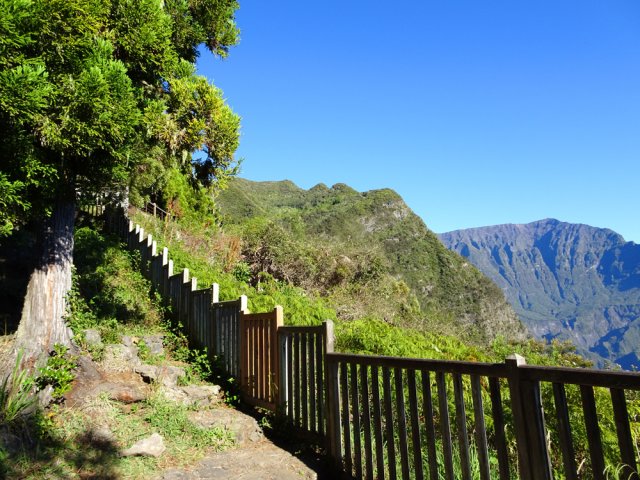 La superbe région des hauts des Makes offre au randonneur de multiples itinéraires pour la parcourir en longeant souvent le Cirque de Cilaos et ses somptueux panoramas. Plusieurs sentiers de la région de la Scierie ont été présentés sur des circuits partant vers le Bénare, venant du Tapage ou de l'Observatoire des Makes jusqu'à Camp 2000. Cette boucle emprunte des sections déjà décrites auxquelles il faut ajouter un superbe sentier qui coupe les lacets de la Route Forestière de la Scierie et du Haut des Makes avant qu'elle ne se termine à la route de La Fenêtre. Il est préférable d'effectuer la boucle dans le sens proposé ; on arrive plus tôt au bord du rempart pour les paysages sur le cirque, la deuxième partie s'effectuant plus souvent en sous-bois avec moins de points de vue. La montée est plus courte dans ce sens mais assez sérieuse sur les cinq premiers kilomètres. Il vaut mieux marcher plus lentement si l'on manque d'entraînement. En partant tôt, on pourra également profiter du lieu pour y pique-niquer en fin de randonnée. Cette région des Makes possède une véritable collection de ces aires paysagères et fleuries qui incitent à la halte et au repos dans la fraîcheur des Hauts. La très courte portion de route, inévitable, s'effectue en descente avec assez peu de circulation routière mais incitant cependant à prendre garde. C'est cette courte portion et les forêts de longoses qui font perdre un cœur à cette boucle qui en mériterait bien quatre.