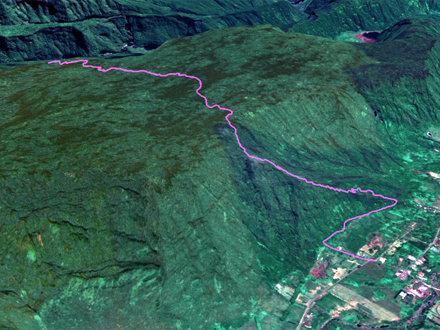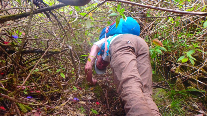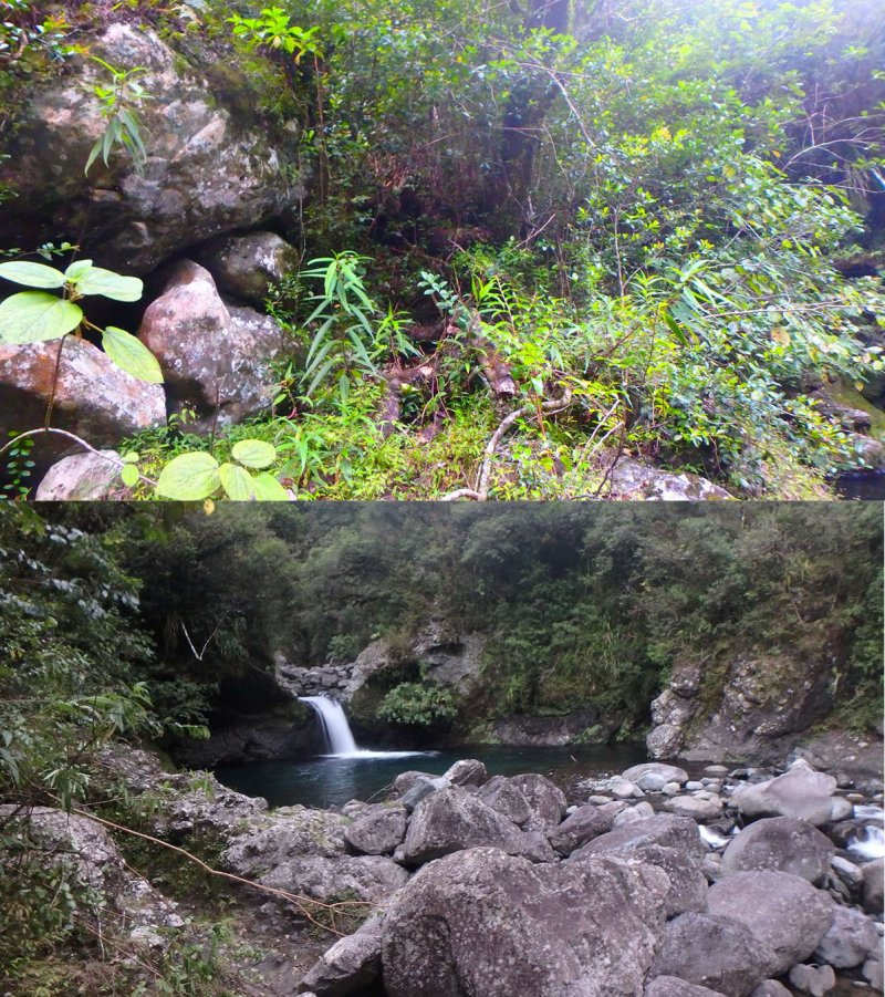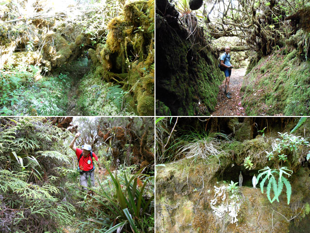 La sortie reste très sportive et réservée à des randonneurs aguerris. Le sentier dégagé descend d'une cinquantaine de mètres vers le Bras Cabot et il faudra attendre d'autres courageux défricheurs ou de substantiels crédits de l'ONF avant de pouvoir se rafraîchir dans l'eau claire du Bras Cabot. Mais la baignade est possible en passant de l'autre côté à partir de la route de Bébour à condition de ne pas avoir le vertige. Les pestes sont toujours aussi présentes, principalement les lysandras (tibouchina viminea) qui ont tout de même un avantage : elles ne piquent pas, ont des feuilles soyeuses et possèdent de belles fleurs. Les goyaviers sont bien présents et quelques touffes de vigne marronne commencent à s'incruster.