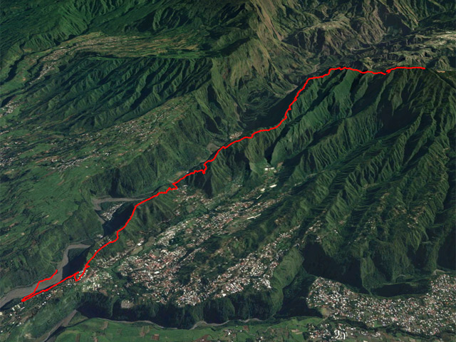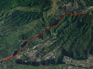 C'est toujours un grand plaisir de randonner sur les flancs du Dimitile. C'est surtout un plaisir pour les yeux car les jambes aiment moins ces grimpettes interminables et ces courtes descentes qui obligeront à remonter encore un peu plus. De tous les circuits de la région de l'Entre-Deux et du Dimitile, le sentier Bayonne est le plus difficile, surtout s'il débute au Bras de Cilaos comme celui-ci. Il offre de très beaux points de vue, tant sur le Bras de Cilaos, les Makes, le Dimitile, le Cirque de Cilaos que l'Entre-Deux ou le Tampon. De nombreux passages étroits ou vertigineux empêchent de rêvasser et capturent toute l'attention du marcheur ; certains peuvent s'avérer techniques par manque d'entraînement (enjambement de troncs, racines hautes, petits graviers, arêtes très étroites, etc.). Inutile de préciser qu'il faudra partir de très bonne heure et prévoir assez de nourriture et de boisson car aucune supérette n'a encore été installée aux abords du très long trajet. Le dénivelé ci-dessous peut à juste titre faire peur mais il se justifie car d'une part, la sortie débute au Bras de Cilaos et d'autre part les nombreuses petites ascensions à l'aller comme au retour ont vite fait de rajouter de la hauteur (Voir profil en dents de scie)