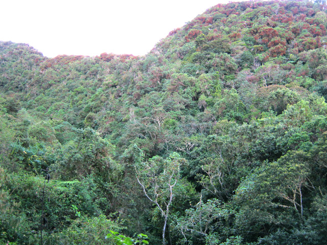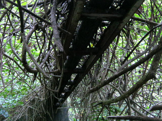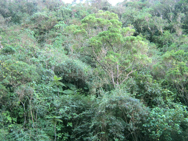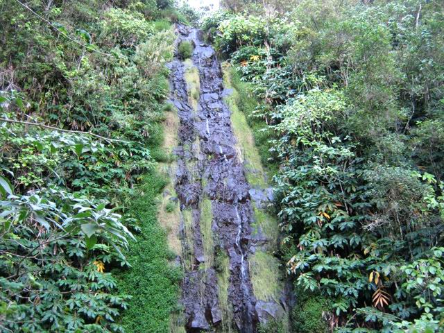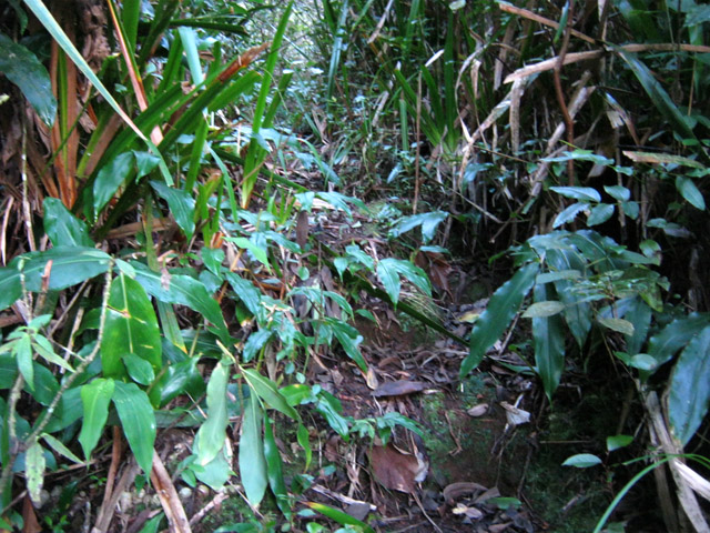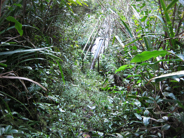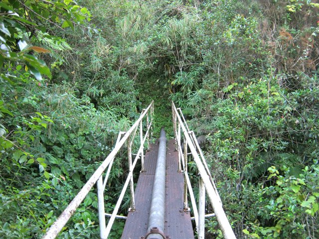 La famille Deveaux a du marquer la région du Tévelave car c'est un nom qu'on retrouve sur toutes les cartes au Nord-est de la ville. Cette très courte sortie à la découverte d'une énième source dans cette zone peut être combinée avec la randonnée vers les Sources La Moque et Ruisseau Amont, surtout que les deux trajets passent au début par le même sentier. Des pestes végétales partout, pas de panorama, un sentier étroit dangereux par endroits et très peu d'eau au captage rendent cette balade peu attrayante. Il faut repérer une période où la pluie a été abondante afin de voir une belle chute d'eau d'une vingtaine de mètres à l'emplacement de la source (Photo 8). Une passerelle permet le passage sans encombre d'un affluent de la Ravine Ruisseau (Photo 4).