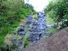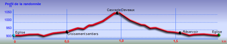 La randonnée débute au cœur du Tévelave, près de l'église et de ses très nombreux parkings. On longe la ruelle qui est à la gauche de l'édifice religieux et on rejoint plus haut une réserve d'eau entourée d'un grillage. Contourner l'ouvrage par la droite, près du grillage, pour pénétrer dans une zone où les pestes végétales se battent pour avoir la suprématie sans qu'on puisse savoir laquelle gagnera. Plus haut les longoses ont depuis longtemps emporté le chalenge. Le sentier est défriché régulièrement par les équipes d'entretien sans pour cela le transformer en sentier de grande randonnée. Il est étroit et passe parfois sous la végétation (Photo 2) ou sous la canalisation (Photo 12). Certaines portions sont très étroites et la chute vers la ravine est possible et sans doute douloureuse à cause des pestes toutes aussi épineuses les unes que les autres. On passe près d'un ouvrage bétonné de recueil des eaux. On poursuit quelques centaines de mètres pour arriver enfin à une grande muraille rocheuse d'où coule une cascade fine mais qui, à en juger par la largeur des rochers nus, peut parfois atteindre de bons débits. C'est là qu'a été édifié un barrage de recueil des eaux de cette importante source. Le retour vers le Tévelave s'effectue très rapidement en raison de la pente.