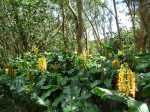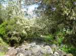 La randonnée débute au croisement de la Ligne des Eucalyptus et de la RF des Tamarins où il est possible se stationner. La route, peu empruntée par les engins est étroite, glissante si mouillée, se laissant dévorer lentement par les longoses et bringeliers (Photo 1). La route effectue une large boucle avant de revenir en direction du Piton Fougères qui dépasse à peine à l'horizon (Photo 2). Les fraisiers des Indes (Duchesnea indica) occupent tous les fossés mais les fruits ne présentent aucun intérêt gustatif (Photo 3). La piste bétonnée cesse en arrivant à une grande réserve DFCI de 6000 m3 (Photo 4). Elle est remplacée par une piste herbeuse (Photo 5). Elle rejoint les limites du parc couvert ici de grands tamarins des Hauts et de zones marécageuses envahies de joncs et de fougères (Photo 6). Laisser sur la droite la piste DFCI de la Ravine du Trou, également herbeuse. La piste, malgré l'herbe, se suit facilement en frôlant quelques beaux tamarins (Photo 7). La pente est faible et ne demande aucun effort (Photo 9). De superbes pieds de bouillon blanc (Verbascum thapsus) ou d'oseille sauvage (Rumex abyssinicus Jacq) bordent le sentier (Photo 10). Certaines tiges dépassent les deux mètres de hauteur. La plante, déjà très envahissante, est dotée d'énormes grappes de graines. On passe très facilement plusieurs ravines sans trop s'en apercevoir (Photo 11). D'autres sont plus remarquables avec rochers, grottes ou cassés basaltiques vertigineux (Photo 13). Après une descente sur le même type de piste herbeuse, on se retrouve à la barrière fermant la Piste des Eucalyptus. Traverser la route des Tamarins et viser, un peu sur la droite, la Piste DFCI des Camélias (Photo 14). Le départ est large, très propre entre les tamarins et acacias noirs (Photo 15). Puis, petit à petit, l'herbe envahit la piste mais le cheminement s'effectue sans difficulté (Photo 16). La piste file plein sud en longeant les clôtures des prairies qui bordent la forêt (Photo 17). On coupe, sans trop la voir, la Ligne des Camélias recouverte de longoses. Plus loin, on a même du mal à imaginer qu'une piste existait il y a encore 5 ans (Photo 18). Laisser la piste suivante qui file tout droit vers la route et prendre à droite. Les tamarins sont de plus en plus nombreux. Certains sont morts pour laisser de belles natures mortes (Photo 19) ; d'autres, bien vivants, atteignent de respectables hauteurs (Photo 20). Plus loin, ce sont de belles touffes de calumets qui résistent encore aux envahisseurs (Photo 21). Ces envahisseurs originaires du Népal, impossibles à éradiquer, fournissent pourtant de très belles fleurs odorantes qui leur ont valu d'être importés en 1819 (Photo 22). La fin de la boucle s'effectue sur la piste entièrement recouverte d'herbe (Photo 23). Très vite, les longoses prendront possession de l'ensemble du parcours comme on le voit sur de nombreuses autres pistes anciennes (Photo 25). Deux possibilités pour rejoindre la fin de la boucle : poursuivre sur la piste des Camélias ou tourner à gauche sur la Ligne des Eucalyptus, plus difficile à repérer si on ne pense pas à regarder sur la gauche. Pour ne pas manquer le retour par le sentier si l'on est passé sans le voir, repérer sur la droite une barrière, une prairie et une réserve d'eau à une cinquantaine de mètres. A partir de la barrière, revenir en arrière d'une quinzaine de mètres et entamer la montée sur un sentier étroit mais bien visible (Photo 27). Ne pas s'étonner d'y retrouver longoses et fougères, remonter la seule véritable pente de la boucle qui peut être boueuse par endroits (Photo 28). On retrouve facilement le véhicule garé au début de la piste bétonnée.