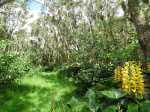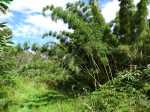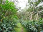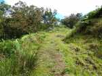 Encore une boucle que l'on ne va pas organiser spécialement mais qui peut se coupler avec une autre de la région proche, comme la boucle du sentier des tamarins. L'intérêt ici réside dans le calme de la région et dans la largeur des pistes qui permettraient de marcher à plusieurs personnes de front si l'herbe n'envahissait pas trop le sol. Hélas, elles sont de moins en moins entretenues et se transforment petit à petit en sentier. On bénéficie de très peu de panoramas vers l'océan. De très nombreux oiseaux s'envolent de toute part et le jeu consiste à les nommer au passage (papangues, cailles, merles, cardinaux, bec corail, tec tec, etc.). On marche tour à tour sur des pistes de gravier, de lave solidifiée, de terre battue ou d'herbe qui peut être humide le matin. En deuxième partie de boucle, la large piste des Camélias est désormais un vrai sentier de randonnée.