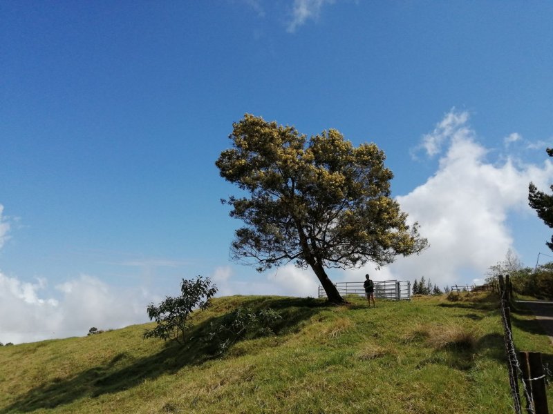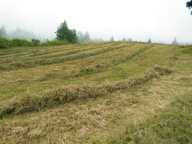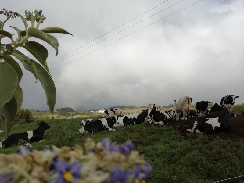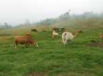 Après une météo prévue exceptionnellement ensoleillée, voici une troisième tentative d'effectuer cette belle boucle sans nuage. Perdu ! Le brouillard et même la pluie sont encore venus gâcher la balade bucolique. Une fois n'est pas coutume, c'est donc ici une boucle champêtre qui empruntera dans sa totalité des routes plus ou moins fréquentées. La verdure y prédomine du début jusqu'à la fin sans voir une seule canne à sucre. La route forestière qui redescend vers Notre Dame des Champs et qu'on emprunte au retour est un pur bonheur de calme et de nature. Les panoramas sur l'océan y sont fréquents ainsi que les troupeaux dans les vastes prairies. La circulation y est presque inexistante sur les deux bandes de roulement bétonnées qui permettent de marcher au centre sur le gazon. Les randonneurs n'aimant pas la route pourront même prendre le vélo pour aller voir de plus près ce beau circuit. Mais attention alors dans la descente sur les bandes de roulement car si la chute se termine d'office dans l'herbe, la pente peut donner assez de vitesse pour se faire mal.