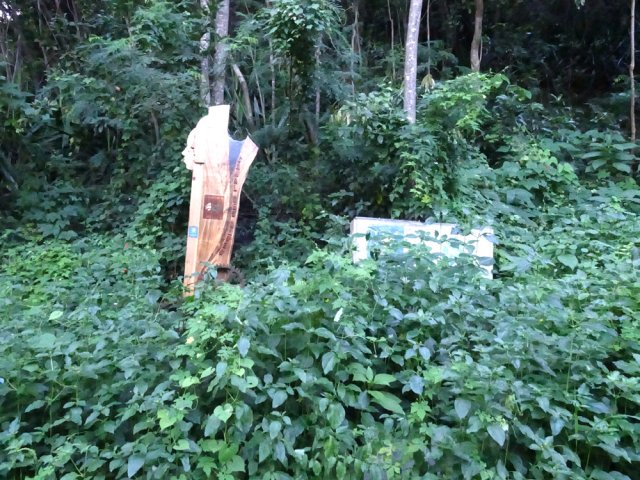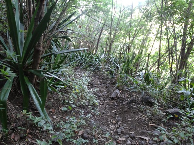 La randonnée débute sur la RN5 sur un petit parking hélas bouché par un tas de terre déversé par un camion de terrassement. La trace descendant à la rivière est bien envahie mais on rejoint la berge sans trop de problème. Le Bras de Cilaos est très large à cet endroit (Photo 1). On repère les gros galets et les parties un peu plus planes où l'on préférera marcher. Profiter des panoramas en direction du Dimitile car ils seront bientôt cachés durant la montée (Photo 2). Malgré le passage récent du cyclone Belal, les crotalaires ont déjà bien repris "du poil de la bête" et vont pouvoir larguer leurs milliers de graines pour peupler la vallée (Photo 3). Après avoir marché en descendant le bras pour ensuite le traverser, on se retrouve face au sentier qui pénètre dans le bois. On rejoint en quelques mètres une ancienne piste de plus en plus envahie de végétation (Photo 4). Partir à droite jusqu'au panneau en hommage au canal des Aloès et au ,panneau de la municipalité, le tout à l'abandon dans de grosses touffes d'invasives (Photo 5). En face se trouve l'entrée de l'îlet, entouré de murs de pierres sèches, proche de grandes balançoires. Délaisser l'îlet et entamer la montée sur un tronçon de sentier ayant souffert des crues de la petite ravine. Grimper 30 mètres et bifurquer à droite sur le sentier historique (Photo 6). Si on le manque, il faudra escalader les hautes marches de la ravine défoncée pour le retrouver 100 m plus haut. Le passage est presque bouché par la végétation mais on passe tout de même sans efforts ni griffures. Plus haut, un panneau vieillissant confirme la bonne direction (Photo 7). Passer ensuite devant la réserve d'eau de l'îlet, cachée dans le sous-bois (Photo 8). Même abandonné en partie, le passage est toujours visible et même bien marqué par endroits (Photo 9). La grosse touffe de bambous qui occupait la droite du sentier a désormais totalement bouché le passage mais le détour est insignifiant (Photo 10). Poursuivre par quelques lacets un peu caillouteux (Photo 11). Partout, des signes de vie demeurent. Des grands et petits jaquiers, des manguiers et des bananiers poussent un peu partout mais souffrent du manque de lumière. Cette ombre permanente semble moins gêner les étrangleurs (Photos 16 et 17). Les trouées sont très rares sur la vallée du Bras de Cilaos (Photo 18). Il faut, plus haut, franchir une petite passerelle sommaire et vermoulue avant de parvenir à un éboulis qui se contourne aisément (Photo 19). Plus loin, frôler deux barres rocheuses par le sentier qui est en bon état (Photo 20 et 22). La fin de la montée s'effectue par une série de lacets comportant quelques pierres instables (Photo 23). Enfin, la dernière ligne droite rapproche du château d'eau entouré d'un grillage (Photo 24). Longer le grillage pour terminer à l'impasse Paille en Queue. Avant de faire demi-tour, descendre une centaine de mètres pour parvenir à la route départementale et profiter des splendides panoramas sur les dents du Dimitile entourant le village de l'Entre-Deux (Photo 25). Si aucun autre itinéraire dans la région n'est programmé, revenir au Bras de Cilaos par le même itinéraire.