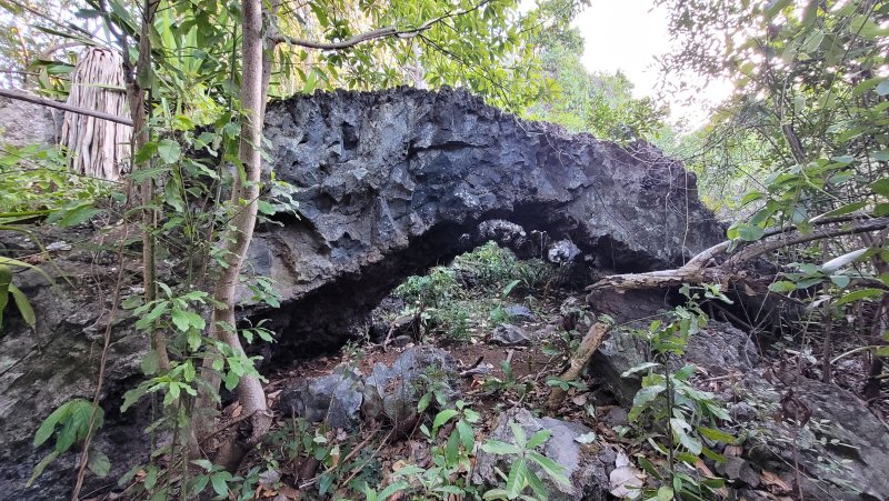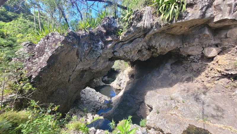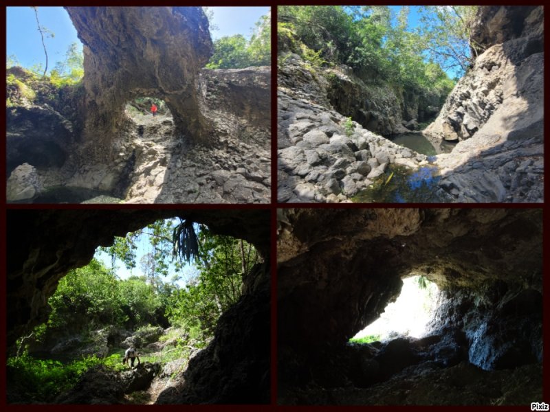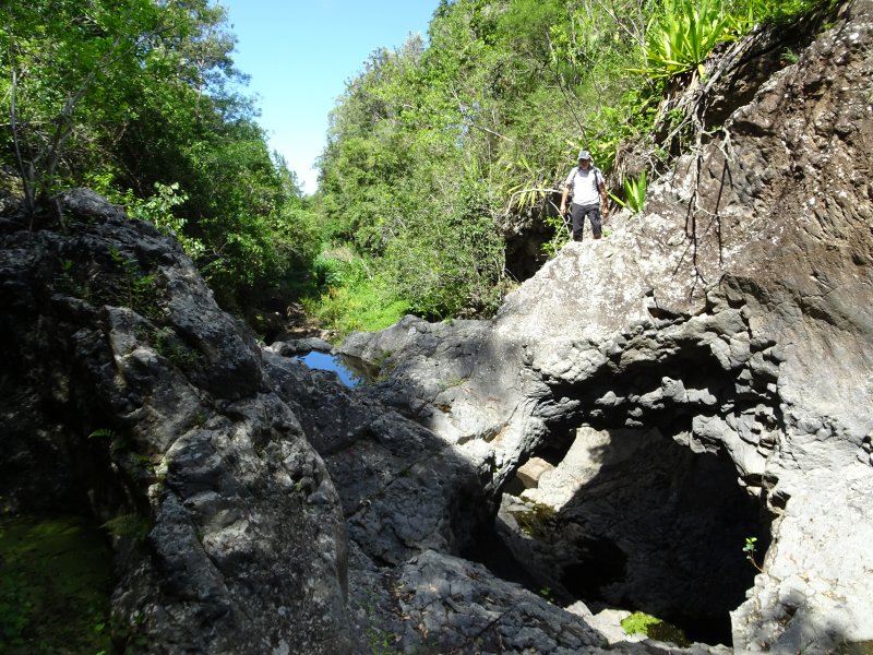 Édit du 08/09. Le commentaire de kevinoi m’a donné envie de finir la boucle aujourd’hui, et je suis repartie sur le terrain de jeu de Martial (au passage: merci et je comprends votre engouement). Je ne sais pas combien de temps cela m’a pris au total, mais donnez vous 4 heures. Ainsi, vous aurez tout le temps d’explorer la Rivière d’Abord, ses grottes, cascades, arches, marmites et autres curiosités mais aussi de chercher votre chemin (c’est une rando aventure, donc ne vous attendez pas à un sentier propret, même si ça arrive par moments). Les parties au fil de l’eau sont phénoménales, la traversée des champs de canne, la ville et son cimetière sont agréables, seul le tronçon sur la route Hubert de l’Isle est dur dur. Comme si être rasée par des voitures roulant vite ne suffit pas, y’en a qui clacsonnent aussi. 🙁