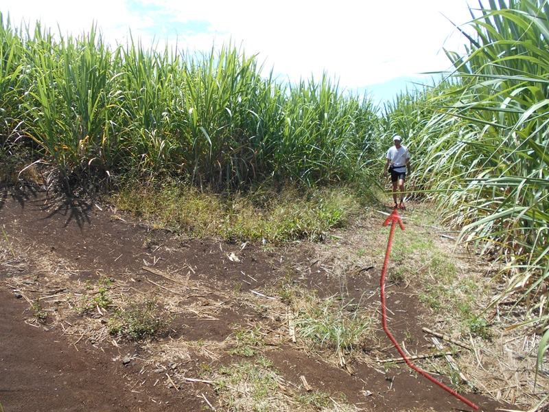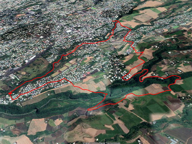 Voici une courte boucle proche du Tampon pour suivre à nouveau la Rivière d'Abord près des grottes et arches de la cascade du Chien, refaire le circuit de Bel Air le long de cette même rivière, contourner la Pointe et rejoindre la route Hubert Delisle en empruntant le sentier de la Pente Gaétan. Perdu dans les cannes à sucre, il a certainement dû servir souvent pour permettre aux ouvriers agricoles de quitter la Pointe pour les champs situés au sud de la Ravine Jean Payet. Depuis que les routes et pistes sillonnent la région, ce sentier sert surtout pour aller remercier Saint-Expedit des vœux qu'il a exhaussés suite aux prières. Cette agréable boucle qui comporte assez peu de difficultés s'adresse à tous. Les abords de la Rivière d'Abord ont a nouveau été nettoyés par l'Association des Petits Tamponnais Ruraux (voir ci-dessous). Il faut marcher sur la route mais sur d'agréables tronçons. Se méfier cependant de la circulation importante sur les deux lacets de la Route Hubert Delisle sur le retour mais aucun sentier ne permet de raccourci. En revanche, on peut prendre le Chemin de la Bergerie pour diminuer les distances sur goudron. On bénéficie de superbes panoramas de la mer jusqu'au Piton des Neiges à partir des champs de canne et d'ananas de la Pointe.