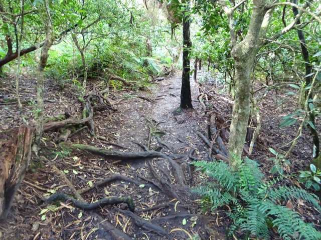 Pour parcourir TOUS les sentiers de cette merveilleuse tamarinaie, il serait criminel de le faire en 1h 15 comme préconisé par la fiche . Et d’ailleurs est-ce possible si ce n’est en courant ? Aménagements de toute beauté, encore améliorés depuis mon dernier passage, qui méritent de savourer lentement ces parcours hors du commun. Une fois de plus BRAVO aux associations qui ont réalisé un travail titanesque remarquable. J’ajoute que je me suis « amusé « à remonter les petites ravines, affluentes du Bras Creux du point le plus bas au point le plus haut de la boucle avec beaucoup de hors sentier dans l’océan de fougères environnant.Quel régal ! La photo 28 vous donnera une idée du charme de ces ravîmes moussues, sans risque de se perdre car les sentiers bien aménagés ne sont pas loin. Bref 4 heures ne sont pas de trop avec en récompense un pique-nique sur des sites eux aussi remarquables.Site exceptionnel à visiter en toute urgence!
