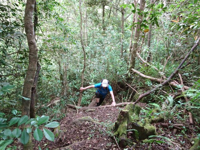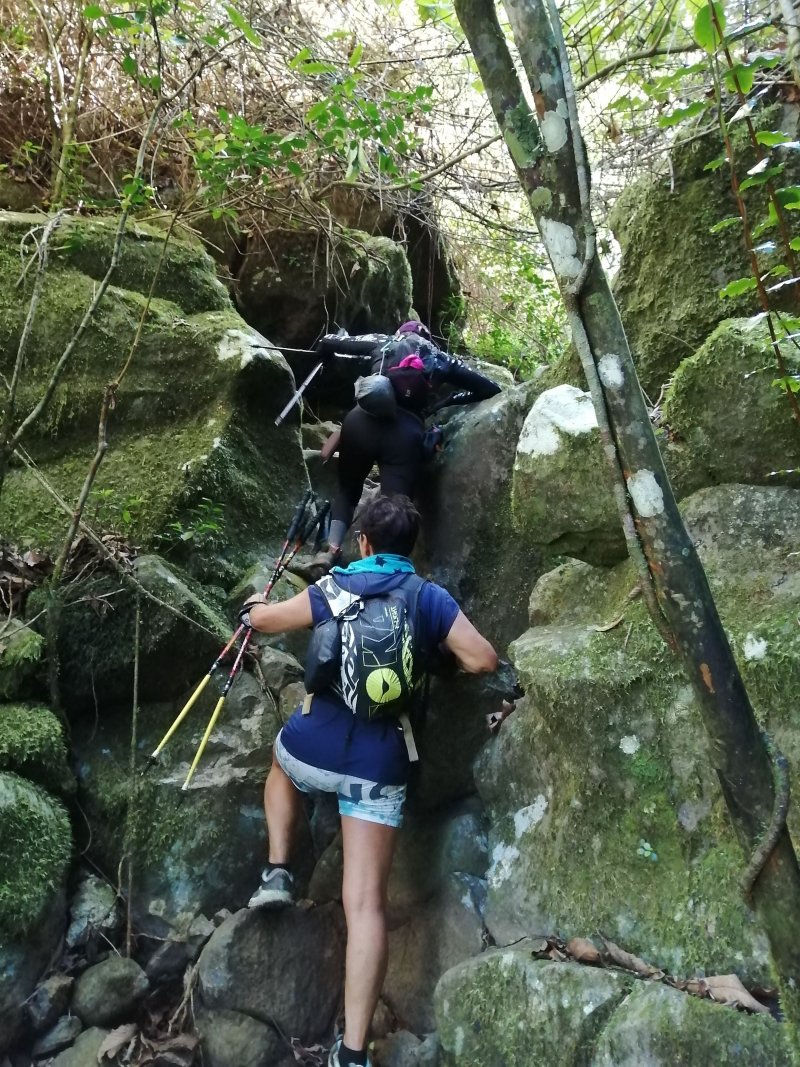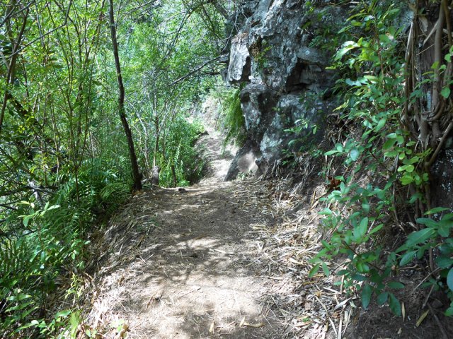 Randonnée à l'ombre, ce qui fait plaisir ! En revanche, le sol est très glissant et il y a beaucoup de branches, vigne et autres plantes sur le sentier, qui le rend difficile à pratiquer.
