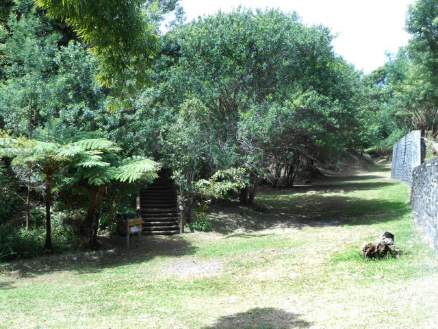 La randonnée débute au parking du Domaine Vidot pour y revenir moins de 5 heures plus tard. Prendre au plus près de la salle des fêtes et descendre une piste large qui se termine à des escaliers en bois. Le sentier de retour se trouve sur la gauche près de la grosse touffe de bambous et l'on peut également débuter par celui-ci. La montée des escaliers et de la partie herbeuse du domaine est aisée (Photo 1). Profiter au passage de beaux arbres, dont quelques fruitiers, répartis le long d'une piste herbeuse en pente faible. On peut également avoir sous les yeux quelques panoramas vers l'intérieur de l'île qui disparaîtront vite une fois sous les arbres le long de la Ravine des Cafres. Passer sous de grands eucalyptus et poursuivre vers un croisement de sentier venant de la réserve d'eau et du circuit BMX. Poursuivre le long du rempart qui domine la rivière dans une forêt de goyaviers. Le cheminement se fait principalement à plat en longeant précipices à gauche et rochers sur la droite (Photo 2). Le sentier oblique sur la droite et s'approche d'un petit cours d'eau et du captage Vidot (Photo 3). Suivre le sentier qui longe ce petit ruisseau au fond envahi de beaux taros et arriver à la route bétonnée. Le parcours de la Fraise franchit la route et se remarque à son panneau en bois. Prendre à gauche, marcher quelques mètres et emprunter des escaliers pour rejoindre une minuscule aire de repos. Le sentier file sur la droite, pénètre sous les futaies de goyaviers et autres poivriers pour effectuer quelques lacets qui se terminent près d'un énorme eucalyptus et de prairies. Prendre à droite le sentier qui va longuement remonter la ravine tout en repérant celui de gauche qu'on empruntera au retour. Il effectue déjà quelques courtes montées et descentes en longeant des barres rocheuses (Photo 4). Certaines sont moussues ; d'autres plus brutes. Il faut même prendre garde de ne pas se cogner pour passer près de certaines (Photo 5). On domine la ravine qu'on a du mal à apercevoir en raison de l'envahissement des pentes par les vignes marronnes (Photo 6). Le sentier est en général de bonne qualité même si quelques arbres tombés ou certaines branches de poivriers imposent de se baisser (Photo 7). On chemine ainsi longuement en rive gauche de parties plates dans les bois à d'autres plus pentues le long des rochers (Photo 8). Repérer pour le retour les innombrables bibes rouges qui patientent sur leur toile (Photo 9). Certaines semblent dormir, d'autres cassent une croute en dévorant une araignée plus petite ou fuient simplement si on s'approche trop près. Le sentier passe près d'une canalisation, franchit quelques minuscules ravines avant de parvenir à une plus importante au fond très rocheux. Après avoir escaladé le fond glissant de la ravine, on poursuit par un bon coup de rein entre les deux ravines sur une crête un peu raide (Photo 11). On se retrouve sur un sentier en haut du rempart qui passe sous des acacias noirs d'où l'on peut voir quelques panoramas sur les cirques (Photo 12). Après un nouveau passage de ravine (Photo 13), le sentier traverse une grande zone recouverte de goyaviers (Photo 14). Les acacias sont remplacés par de magnifiques eucalyptus à l'approche des grandes prairies (Photo 15). Le sentier, un peu dévoré par la végétation, longe la clôture proche d'un éboulis avant de replonger vers le rempart (Photo 16). Même en s'approchant de la ravine, impossible de voir les galets qui recouvrent le fond (Photo 17). On remarque en face les prairies gérées par la SCA de Bérive qui cachent un peu les nouveaux panoramas (Photo 18). On parvient, après une longue descente, à la ravine qui se traverse très facilement (Photo 19). On se retrouve pour un temps sur cette rive droite que chacun respectera en restant sur le parcours. De beaux arbres bordent ce sentier en très forte pente dont d'énormes pieds de champacs qu'on a remarqués depuis le départ (Photo 20). Les mains sont même nécessaires pour s'aider dans les coups de reins. Une fois là-haut, commence une balade à plat sous les goyaviers en longeant quelques canalisations (Photo 21). Le sentier redescend vers les zones rocheuses et moussues. De hautes falaises verticales bordent le sentier (Photo 23). Elles pourraient constituer de beaux spots d'escalade si elles n'étaient pas aussi éloignées de la civilisation. Certains effondrements récents ont laissé sur place d'énormes blocs qui se contournent facilement mais peuvent inquiéter si l'éboulis se reproduit. Après avoir escaladé un énorme bois maigre effondré également, on se retrouve près du bassin bordé d'une petite grotte et alimenté par un mince filet d'eau mais pas toute l'année (Photo 24). L'endroit, sauvage, symboliquement désigné comme fin de parcours, peut donner lieu à une pause au calme avant de repartir vers l'aval. On remarque le sentier qui repart en rive gauche pour une autre fois si on a la forme pour effectuer la totalité de la boucle, plus longue et surtout plus difficile en raison de la forte pente. Le retour, plus rapide en raison des descentes plus fréquentes, s'effectue par le même sentier. Arrivé aux prairies proches du domaine Vidot, délaisser le sentier pris à l'aller et filer tout droit entre les eucalyptus (Photo 26). La fin du circuit s'effectue sur quelques fortes descentes ou des portions plus plates dominant la Ravine des Cafres (Photo 27). On parvient très vite au point de départ, proche des grosses touffes de bambous (Photo 28).