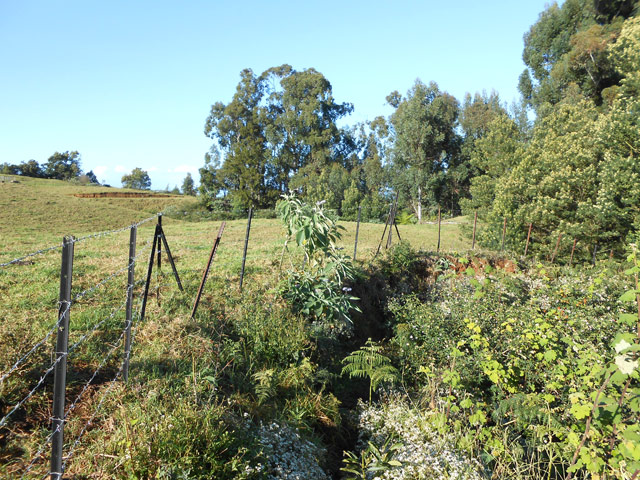La famille Isautier possède une centaine d'hectares situés en rive droite de la Ravine des Cafres, entre Bérive, la Ligne d'Equerre et Camp Mussard. Ces propriétés sont gérées par la SCA de Bérive. Une partie des terres est en culture de canne à sucre, l'autre accueille des troupeaux de vaches Salers. Sans évoquer le fait que certaines barrières sont retrouvées ouvertes et que des bêtes se blessent en s'échappant côté ravine, la SCA de Bérive a organisé, en partenariat avec l'Université de la Réunion (Master I et II / UFR Sciences de l’Homme et de l’Environnement/ Département Ecologie Terrestre Peuplement Végétaux et Bio-agresseurs en Milieu Tropical), un chantier de restauration visant à éradiquer les "pestes végétales" et à les remplacer par des endémiques. Monsieur FAGES, directeur de la SCA, demande que soit scrupuleusement respecté le passage en rive droite de la ravine des Cafres afin de ne pas sortir du sentier et ainsi détruire, même involontairement, les nouvelles plantations ou celles qui ont été dégagées. Je sais compter sur les "randopitonneurs" pour respecter ces consignes, principalement entre 900 et 1080 m, altitude de passage du sentier sur les propriétés gérées par la SCA.