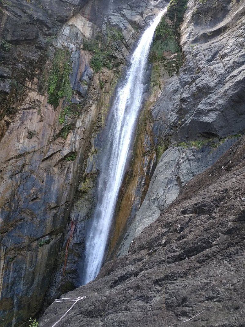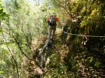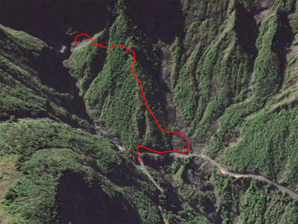 On peut, une fois n'est pas coutume, emprunter un sentier destiné à nos amis canyonistes pour se régaler de nouveaux spectacles, parfois aquatiques ou de panoramas inhabituels. C'est le cas de ce très court trajet tout en montée qui quitte la route de l'îlet à Cordes pour se rapprocher au plus près de la haute cascade dont on aperçoit le sommet depuis le pont. On comprend très vite en arrivant au terminus que la dernière corde partant vers le vide n'est pas faite pour un randonneur, surtout s'il souffre du vertige. Le circuit est très court et peut très bien se combiner avec la montée à la Cascade Pitsa puisque le sentier de départ est commun sur 50 mètres. Attention, si on peut effectuer cet aller-retour par mauvais temps il en va tout autrement de la cascade Pitsa qui se pratique presque totalement sur rochers glissants. Ne pas manquer, dans les trouées de la montée, les dernières chutes de la Ravine les Salazes qui se jettent dans le Bras Rouge. Là-haut, c'est un paysage fantastique qui attend les courageux qui auront monté ces 200 mètres et un peu redescendu jusqu'au bord du précipice. Il est fortement déconseillé d'amener des enfants en raison des à-pics de la falaise en fin de parcours.
