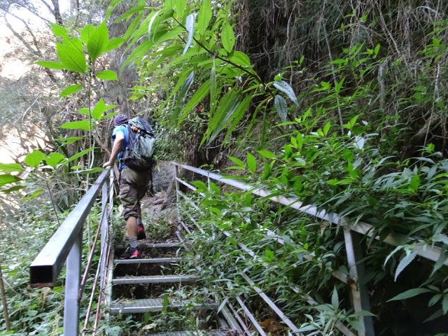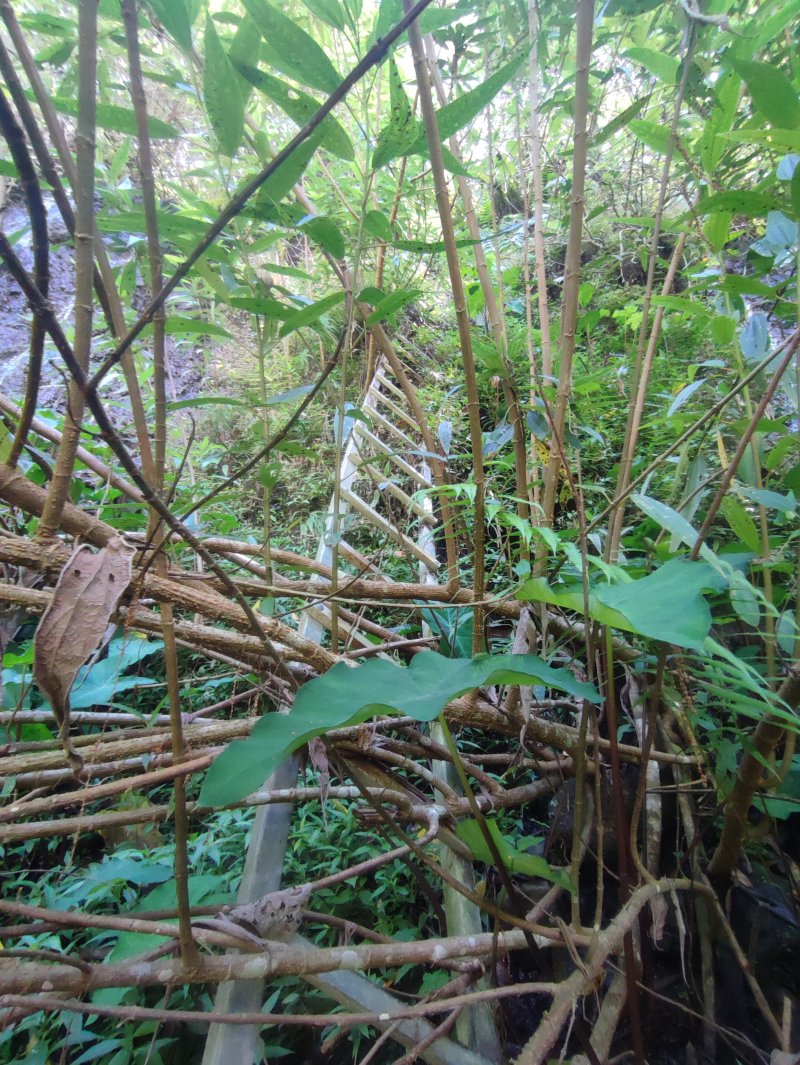 Sur le retour nous avons pu gravir l'échelle aux 40 barreaux qui est vraiment impressionnante vue son état. Elle se mérite car très peu visible avec la végétation.