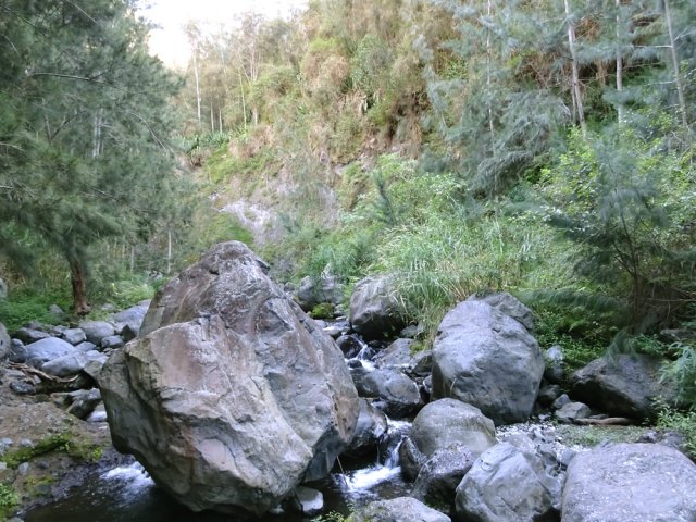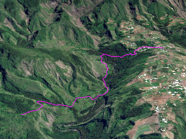 ATTENTION : Circuit refait et en partie nettoyé jusqu'au plateau de l'Îlet Sources. La végétation griffue et les plantes distribuant gratuitement leurs "col col" font de cette sortie une aventure à réserver aux habitués de la recherche des sentiers lontan. L'abandon progressif des îlets habités de la vallée remisent cette sortie aux oubliettes.