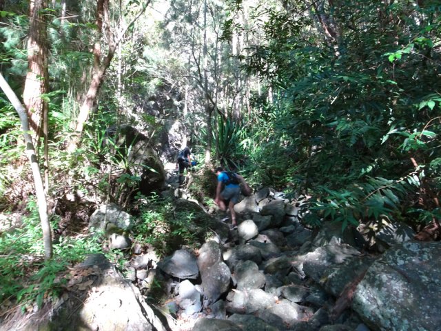 Après avoir visité chaque recoins de l'ilet saint Paul nous avons rejoint la ravine Gabriel puis entamé l'ascension vers l'îlet sources. Nous avons marqué un arbre pour ne pas rater le sentier 100m après le début de la ravine. Un gros nettoyage a été effectué durant l'ascension vers le plateau, impossible de rater la trace alors foncez !