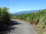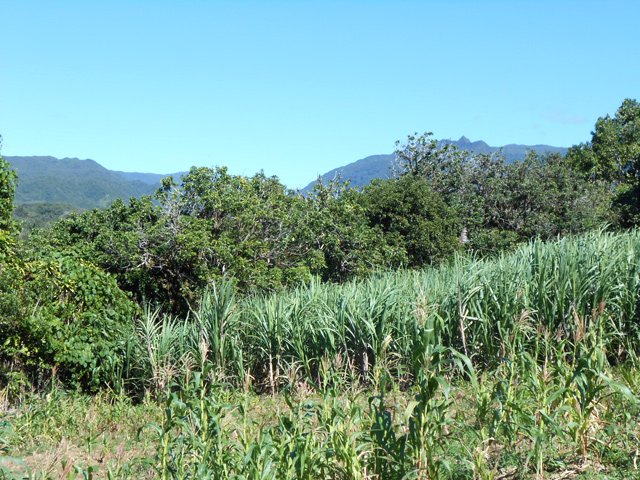 La portion sportive emprunte la totalité du circuit décrit ci-dessus mais se prolonge dans deux directions avant de se terminer au parking officiel. A partir de la rivière poursuivre sur le sentier qui est beaucoup plus technique que celui, à plat, pris pour arriver à ce qui peut être un gué pour rejoindre le circuit de l'Îlet Coco. Le sentier, sans doute créé par les pêcheurs, est étroit et il faut parfois enjamber des branches ou racines avant de passer au plus près d'une petite case en tôle, abandonnée et rouillée (Photo 13). Poursuivre ou non vers l'amont pour se rapprocher de la rivière. On arrive ainsi à nouveau sur les berges et il est plus sage de rebrousser chemin même si on sait que les pêcheurs n'en font rien. Cela permet de rallonger un peu cette courte balade tout en donnant quelques nouvelles vues sur le cours d'eau. Repasser devant la vieille case et poursuivre en guettant sur la gauche un sentier très visible car assez fréquenté. Les premiers mètres qui permettent de voir le haut de la falaise indiquent qu'il faudra un effort plus sérieux pour continuer dans cette direction. La trace est bien marquée et on chemine sur des pierres moussues, des racines et surtout de très hautes marches (Photo 18, 19 et 20). Les mains sont même indispensables par endroits. Ne pas prendre à gauche à la première partie plate rencontrée mais poursuivre tout droit avant d'entamer la deuxième partie de la montée qui vaut largement la première (Voir le profil). Il faut près d'un quart d'heure pour atteindre le sommet après ces 130 mètres de grimpettes qui frisent parfois les 45 degrés. C'est le soulagement de marcher à plat aux premières trochées de canne à sucre (Photo 21). Obliquer à gauche en lisière pour rejoindre la piste puis la route. Les cannes sont partout avec des panoramas élargis si elle est en cours de coupe (Photo 22). Plusieurs pistes dans les cannes à sucre permettent de modifier l'itinéraire de la boucle pour la rallonger un peu. Attention cependant de ne pas partir à l'opposé du point d'arrivée ! La vallée de la Rivière n'est jamais loin. On la devine à la lisière de bois de couleurs près des champs de canne à sucre (Photo 24). On profite de superbes panoramas sur Takamaka ou le Mazerin (Photo 23). C'est un vrai plaisir de rejoindre le véhicule en se baladant dans les cannes sur cette route bétonnée en descente légère (Photo 25). Plus bas, des clôture de fil barbelé protègent les immenses vergers de longanis (Photo 26). On parvient facilement au parking en évaluant tout autour les surfaces couvertes de panneaux (Photo 27).