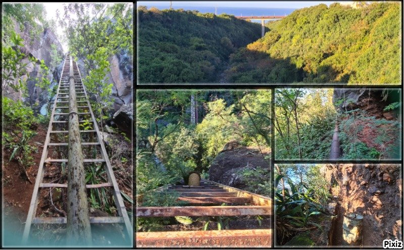 Chaque fois qu'on marche au plus près des travaux qui ont été nécessaires, au siècle dernier, pour amener l'eau dans les villes, on est impressionné par l'ingéniosité et l'habileté des ouvriers. Ils ne craignaient pas le vertige et se devaient de construire pour le bien de tous. Pourquoi, alors qu'ils y travaillaient, aurions du mal à seulement y marcher ? Quel plaisir de parcourir cette boucle très spéciale qui s'apparente encore à de la randonnée et qui longe souvent de magnifiques spots d'escalade ! Si on prend les cordes pour escalader les rochers, ce n'est pas de la randonnée. Si on utilise les échelles, la fiche peut être publiée pour les amateurs du genre. Inutile de faire de longs discours sur le vertige possible lors de la sortie ; les images et film en racontent suffisamment. Chacun réfléchira donc à deux fois avant de se lancer tête baissée dans cette vertigineuse escapade à deux pas de la grande ville de Saint-Pierre. Les habitants des lieux, si proches, laissent d'ailleurs tellement de détritus sur le sol que les dangers sont aussi nombreux sous le pied que sur le bord abrupt du sentier ou de l'ancien canal. Jamais on n'a rencontré autant de fourmis et c'est presque un plaisir que de se donner des gifles pour les chasser. Un coup de chapeau en passant aux alpinistes qui viennent s'entraîner sur ces murs verticaux surchauffés par le soleil du Sud.