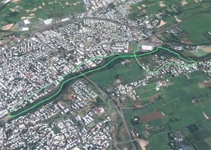 Se rendre à Saint-Pierre et prendre la direction du Tampon à partir du Rond-point des Casernes - Rouler quelques centaines de mètres et se garer au parking du grand supermarché rencontré en face de la balance à canne à sucre - Partir par la rue du Père Lafosse puis tourner 30 mètres après l'entrée des fournisseurs - Rejoindre le rempart et descendre l'échelle pour atteindre le Sentier Canal - Tourner à droite au pied de l'échelle et longer le sentier Canal jusqu'à la fin praticable - Tourner à droite et grimper la dizaine de mètres jusqu'à la route - Prendre à gauche la Rue du Père Lafosse puis la ruelle qui mène à l'escalier qui rejoint le radier de la Rivière d'Abord - Remonter la totalité de la rivière jusqu'au radier de Bassin Plat - Tourner à droite puis sur l'allée des Aubépines qu'on longe jusqu'à l'Allée des Muguets - Suivre l'allée jusqu'à l'Allée Pluie d'Or - Longer un champ de pitayas et trouver sur le gauche la trace discrète qui amène à la deuxième échelle - Descendre cette pente forte, retrouver la passerelle et franchir la rivière à l'intérieur de la structure - Retrouver l'échelle de début de boucle et rejoindre le parking du supermarché.