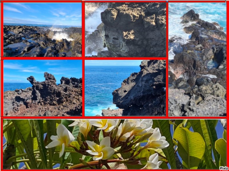 L'imagination aidant, on pourra aussi déceler des figures ou des dinosaures dans la roche; mais la simple vue de l'océan bleu et ensoleillé, ainsi que celle des premières fleurs écloses de frangipaniers au Cimetière de Saint-Leu raviront aussi le promeneur (PHOTO 5) !
