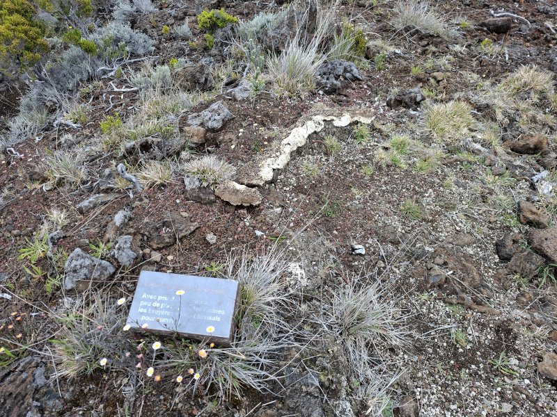 A deux pas du gîte du Volcan, un petit sentier pédagogique effectue une courte boucle dans les brandes d'altitude. Parsemé de sculptures et de petites pancartes, il résume en quelques phrases la transition entre le minéral issu du cœur de la terre et la végétation qui s'installe petit à petit sur les pentes du volcan. La boucle est courte ; c'est pourquoi elle est intégrée dans une autre boucle qui utilise un agréable sentier rejoignant la Rampe Liot, la montée au Pas de Bellecombe et une partie de piste pour bénéficier de panoramas sur la région de la Fournaise. Elle sera un excellent palliatif en cas d'arrivée par mauvais temps au Pas de Bellecombe qui peut faire annuler des randonnées au Piton de la Fournaise. Pour les locataires d'un soir au gîte, la petite boucle, effectuée seule avant le rhum arrangé du soir, mettra en appétit.