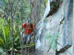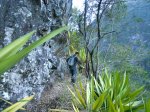 Le sentier du Petit Serré au Tapage ?: Inscrit au programme de randopitons.re depuis longtemps, confirmé par des gramounes du village du Petit Serré, reconnu au départ par François qui avait même dégotté une vieille carte, il était temps pour nous de nous lancer dans l'aventure. Si la gramoune rencontrée un jour qui disait rejoindre sa grand-mère chaque dimanche pour une visite familiale avait encore les jambes pour refaire le pèlerinage, elle serait fortement déçue. La végétation, sans pitié, sans respect pour les gens ayant vécu là des décennies à tout envahi. Les chocas font 3 mètres de large et les galaberts ont ici les mêmes épines qu'ailleurs. Si on rajoute les éboulis franchissables, les fourmis par milliers, la chaleur, il va sans dire que cette sortie extrêmement sportive ne s'adresse qu'à la vingtaine de fous que compte la Réunion et qui se sont pas arrêtés par quelques griffures, hors sentiers où multiples hésitations. Déçus de n'avoir pas relié le Tapage il a fallu se contraindre à abandonner les recherches après avoir dépassé le sentier de l'Îlet Bleu. Il faut aussi préciser que le GPS dans ces falaises abruptes est précis à 200 mètres près !!! Un sentier partant du Tapage pourra également faire l'objet de recherches futures.
