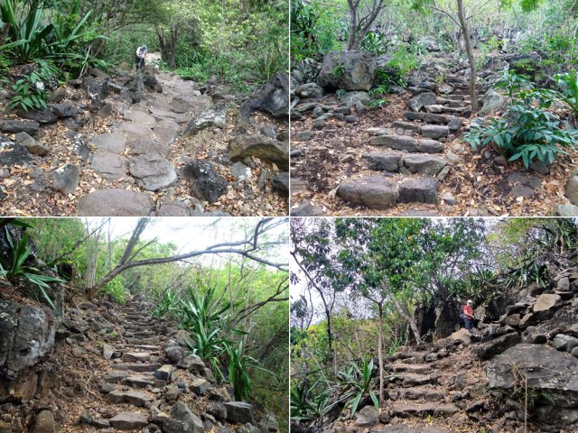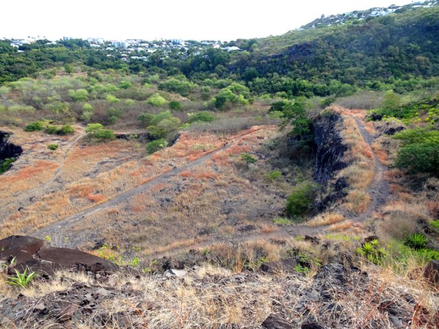 A sa création, la première fiche décrivait des sentiers étroits, pas toujours faciles à suivre et dont beaucoup étaient en cours de création. Dix ans plus tard, tous ces itinéraires sont des boulevards où s'entraînent les sportifs des villes voisines. En regardant la carte ci-dessous, on peut repérer une dizaine de ces sentiers ou pistes permettant de courir régulièrement dans cette zone, sans jamais passer au même endroit. Le cyclone Garance, particulièrement virulent dans le Nord et l'Est, a mis à mal les fonds de ravines, que ce soit la Grande ou la Petite Ravine des Lataniers que l'on côtoie lors de cette boucle. La montée sur la Crête des Lataniers est régulière et ne demande jamais de gros efforts. La descente est raide mais plus courte. On a l'impression, durant ces 3 heures, de marcher sur d'immenses pierriers qui semblent constituer les collines entourant la Possession. L'exploitation de ces pierres se remarque lorsque l'on passe devant les étages de la carrière d'extraction que l'on peut contourner ou traverser, au choix. En toute saison le climat est rude dans le Nord-Ouest de l'île. Ne pas négliger la quantité d'eau à emporter.