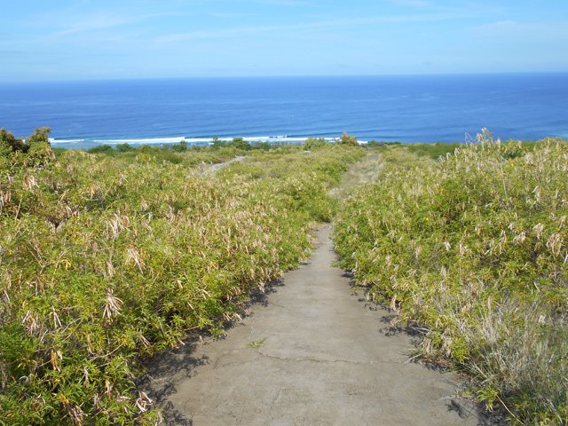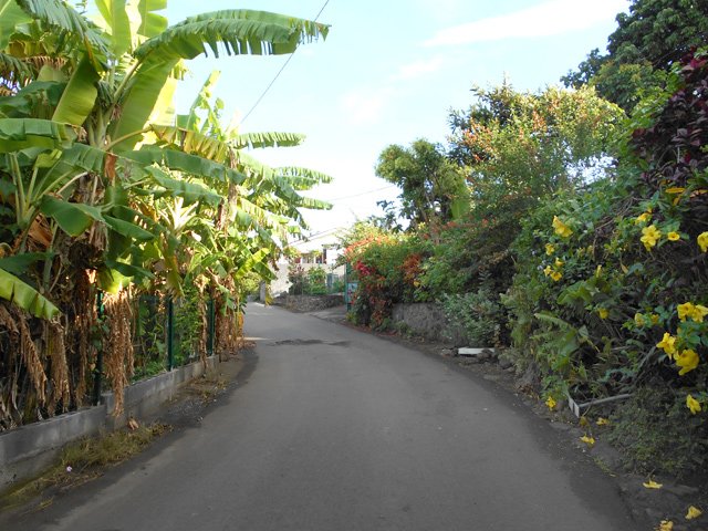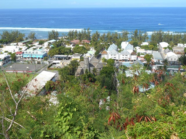 La randonnée débute en pleine ville de Saint-Leu où il est possible de se garer à peu près partout. Cette fiche propose le vaste parking de la rue Archambaud, gratuit, facile d'accès et bien situé. Remonter la Rue Saint-Michel puis prendre assez longuement le Chemin Dubuisson pour rejoindre l'escalier qui mène à Chemin Canal, quelques maisons situées entre la ville et la Route des Tamarins. L'escalier en béton est assez court et se prolonge par un sentier très caillouteux abrité de quelques tamarins des bas dont les fruits trainent au sol (Photo 1). Certains spécimens, vu la sécheresse et la température, atteignent presque des records (Photo 2). Ils procurent de l'ombre mais comme l'air est très chaud, on en profite très peu (Photo 3). La pente est sérieuse sans être trop forte. La liane corail envahit toute la végétation alentour. C'est beau pour la belle couleur de ses fleurs mais dommage pour la nature. Plusieurs sentiers partent sur la droite ; ils mènent tous à des cases où vivent des gens aimant vivre dans la solitude. On arrive au cul de sac d'une rue et le sentier repart dans la même direction, moins caillouteux et plus vert, avec une ombre agréable. Un nouveau cul de sac se présente et on poursuit, toujours dans la même direction en longeant une canalisation sur la gauche. La RN1 est de plus en plus bruyante ; le sentier tourne à gauche pour la longer (Photo 1). Remarquer sur la gauche la clôture barbelée qui est sans doute là pour qu'on ne puisse pas pénétrer dans les milliers d'épineux inextricables qui la bordent ! On franchit une petite passerelle puis on traverse la Route des Tamarins en passant sous le pont de la Ravine des Poux (Photo 5). Le sentier repart très vite sur la droite par les escaliers (Photo 6). Il longe la route dans l'autre direction en empruntant le haut du talus. Le sentier qui remontait vers l'est est désormais trop encombré pour randonner avec plaisir. Suivre alors l'itinéraire en passant entre deux propriétés protégées par du grillage. Longer une piste en terre qui rejoint le Chemin Lelièvre. Tourner à gauche et rejoindre le village en suivant la route ou en prenant les deux raccourcis (voir carte). Le premier est encombré alors que le deuxième est large et aisé. On arrive aux premières cases entourées de jardins fleuris (Photo 7). L'itinéraire se poursuit sur le Chemin Lelièvre qui traverse plus haut des cannes et prairies avant de retrouver la RD13 par un charmant itinéraire (Photo 8). Prendre à gauche et longer cette route où la circulation peut être forte à certaines heures. Effectuer un long détour pour aller passer sur le pont de la Ravine des Poux et le dépasser (Photo 1). Repérer, sur la gauche, le long du mur qui sépare du ravin, le mémorial dédié aux 28 victimes de l'accident de bus du 28 mars 1967 qui a fini sa course plusieurs dizaines de mètre plus bas (Photo 10). Un coup d'œil sur la vallée permet d'imaginer qu'il n'y avait pas de parapet à l'époque (Photo 11). Le village de l'Etang Saint-Leu est agréable à traverser en cherchant les cases ou jardins tout en profitant de larges panoramas sur Saint-Leu et la Saline (Photo 13). Une belle et grande propriété se situe sur la droite à l'entrée du village (Photo 12). Remarquer le manguier qui a poussé sous le pont de la Ravine du Petit Etang (Photo 14) et a résisté aux crues depuis un demi-siècle. Pourtant, la vallée très étroite à cet endroit doit créer des hauteurs d'eau impressionnantes ainsi qu'un courant très fort (Photo 15). Ne pas manquer, à gauche, le Chemin Crescence bordé de cases, de jardins ou de vergers (Photo 16). La route se poursuit mais repérer, à droite d'une case en bois, le discret sentier qui part sur la droite. Il est rocheux, envahi de chocas et de cactus pitayas et se termine à une route étroite qu'on emprunte vers la droite (Photo 17). Franchir un pont métallique sur la Ravine du petit Etang et entamer une longue descente sur une route bétonnée en si forte pente qu'il faut se pencher vers l'arrière pour ne pas être entraîné vers le bas (Photo 18). Plus bas, la petite route arrive à la Route des Tamarins et se poursuit vers Saint-Leu par un long tunnel (Photo 20). Dans la descente, repérer et emprunter le Chemin de la Salette indiqué par une plaque de rue bleue. La tentation de passer par la route bétonnée est grande (Photo 21) mais le sentier part sur la droite et le suit jusqu'aux premières maisons. On s'est beaucoup rapproché de Saint-Leu qu'on domine (Photo 23). L'escalier (Photo 24) qui mène à la chapelle débute immédiatement à la première maison et rejoint très vite Notre Dame de la Salette (Photo 25). Après un chemin de croix, une prière ou une simple visite d'une des petites chapelles des plus fréquentées de l'île, on se retrouve sur la route. Filer en face visiter les jardins entourant l'église de lave (Photo 27), poursuivre jusqu'à la mairie pour voir cet autre bâtiment fabriqué en lave grise donnant aux édifices un caractère austère puis flâner près du port (Photo 28) et du littoral pour rejoindre le parking à la fin de la boucle.