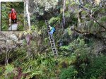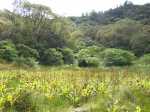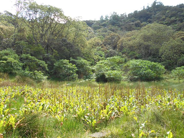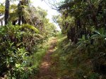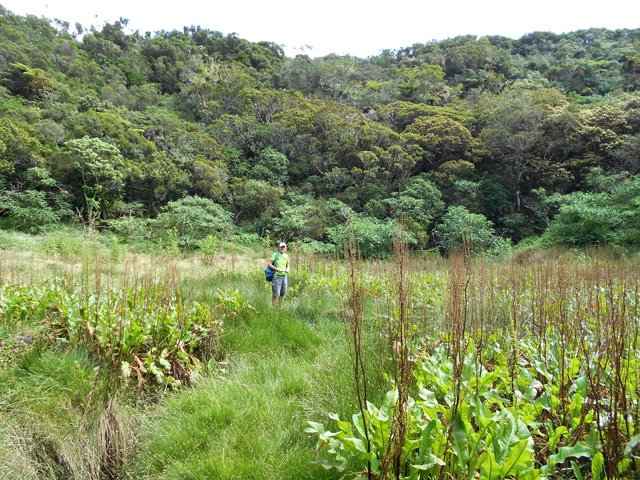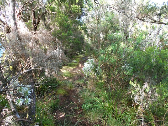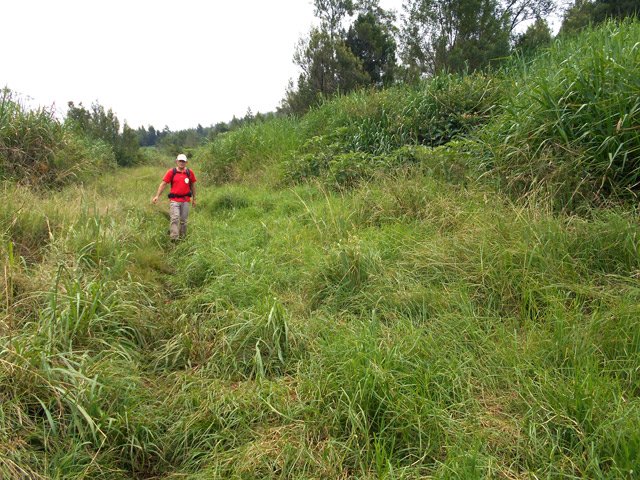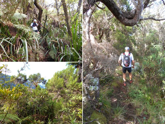 Ce circuit, qui reprend deux itinéraires déjà présentés pour faire le tour de Grand Coude et se rendre aux Trous de Cissia, offre aux randonneurs une nouvelle idée de boucle un peu sportive mais qui permet de traverser une magnifique forêt semi-primaire et admirer la région par de superbes panoramas. La boucle est courte, ne comporte pas de montées abruptes malgré quelques raidillons, présente des portions très glissantes dans la descente du rempart de Grand Pays et utilise un peu de route bétonnée qui n'enlève rien au plaisir de marcher dans les prairies. Malgré tous ces avis sur le mauvais état du parcours, on voit que le sentier est fréquenté. La végétation a certes repris ses droits mais jamais sur le sentier. Quelques coups de sabre ont augmenté la largeur du passage, mettant d'ailleurs à mal les sabres péi Machaerina iridifolia (paille sabre, sabre marron) Cyperaceae -Endémique des Mascareignes dans la descente où ils foisonnent. Il est regrettable d'arriver au kiosque après plus de 2 kilomètres de montée envahie par les herbes et les plantes et de trouver un panneau qui semble avoir été installé il y a deux heures tellement il est neuf et de remarquer que rien n'est entrepris pour de quelconques nettoyages. Comme un des panneaux précise que "le Département valorise les forêts de la Réunion", ceci explique peut-être cela : il est vrai qu'en fermant la totalité des sentiers de randonnée, peut-être les forêts seront-elles mieux préservées puisque plus personne n'y aura accès ! Alors pourquoi le panneau ?