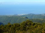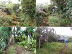 Une reconnaissance récente de ce circuit a permis de constater que plusieurs sentiers avaient été créés à force de petites erreurs d'aiguillage. RAPPEL : A la fin de la ligne domaniale venant du kiosque, on franchit une petite ravine assez profonde. Il faut remonter la pente assez rude et poursuivre sur le sentier qui fait un coude vers la droite en se rapprochant au plus près du rempart. Ne pas chercher à tourner à droite tant qu'on a pas atteint ce gros caillou à l'arête assez vive qui siège au milieu du sentier (Photo 1). Ne pas tourner à droite avant ce caillou (trait rouge) mais remonter pour atteindre le rocher dénudé entouré de branles verts (trait bleu). De ce rocher, on a un panorama de 160° sur Saint-Joseph et Grand Coude (vignette de la photo 2). Tant qu'on n'a pas admiré ce panorama, on ne réfléchit pas. Après le panorama, poursuivre dans la même direction vers le Chemin des Géraniums en longeant, au début, au plus près du rempart.
