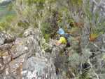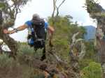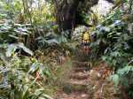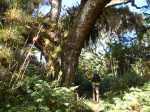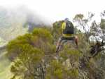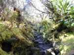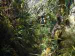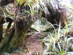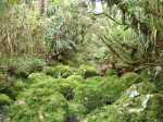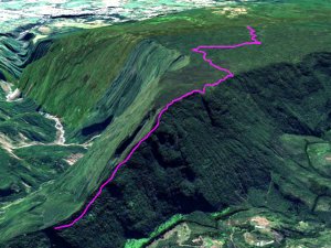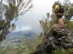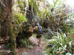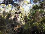 La boucle du Piton Plaine des Fougères à partir de la Maison Martin est un classique du nord. Elle permet de traverser par deux sentiers une magnifique forêt constituée en partie de grands tamarins des hauts entourés de bois de couleurs, fougères et hélas de plus en plus de longoses. C'est là qu'on a la plus grande concentration de ces magnifiques arbres endémiques qui, une fois tombés au sol, poursuivent leur croissance. Ils créent des dizaines de ponts naturels qui imposent parfois de se baisser. Ce parcours emprunte une partie des sentiers déjà décrits ainsi que celui qui traverse la forêt pour relier les deux itinéraires. Une fois au belvédère, la distance est courte jusqu'au Piton Plaine des Fougères. Elle n'est guère plus longue pour descendre vers le Piton Bénoune mais, même si un étroit sentier a été formé par les intrépides qui s'y rendent, il n'est pas à la portée de tous. La descente est parfois violente, la crête très étroite est constituée en partie de pierres empilées qui ne demandent qu'à tomber dans le vide. La descente s'effectue souvent sur les fesses et la remontée à quatre pattes. Heureusement, de longues portions sont recouvertes d'une végétation essentiellement constituée de branles tortueux. Ne jamais leur faire confiance avant d'avoir testé la solidité de leurs branches qui pourraient être pourries ou vermoulues. Bien suivre l'étroite sente pour ne pas marcher sur les magnifiques sphaignes qui recouvrent l'arête par endroits.