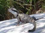 La traversée entre Sydney et Manly est toujours un plaisir sur des ferries rapides en profitant des vues sur les mythiques ponts et opéra de la ville (Photo 1). Les gratte-ciel diminuent à vue d'œil au fur et à mesure de la traversée (Photo 3). L'arrivée au wharf est rapide. Suivre le flot des centaines de personnes qui filent immédiatement vers la plage. Obliquer sur la gauche et délaisser la foule pour commencer la sortie par une visite de la ville, de l'aquarium ou du Manly Art Gallery Museum avant de rejoindre la plage qui est le lieu de rendez-vous des surfeurs. La très longue plage qui dépasse le kilomètre de sable est longée par une allée où des centaines de très vieux araucarias ont été plantés par les premiers colons au 18ème siècle (Photo 4). Un panneau en retrace d'ailleurs l'histoire dont la lecture ne prend qu'une minute. Le matin, la plage est surtout fréquentée par les sportifs (Photo 5). L'après midi ou en fin de semaine, ce sont des milliers de personnes qui s'y agglutinent. Longer ensuite une petite route, la Marine Parade, une piste cyclable et piétonnière où viennent tous les sportifs qui ne font ni surf ni rame. Elle passe près d'une piscine d'eau de mer (Photo 6) avant d'arriver à une microscopique plage qui termine la Cabbage Tree Bay. Repérer, sur les roches bordant le parcours, toutes les sculptures d'animaux d'Australie (Photo 7). Il y en a de toutes les tailles et de toutes les espèces, des plus classiques aux plus endémiques (Photo 8). Une fois parvenu à la plage, monter vers le grand parking destiné aux baigneurs. En partant sur la gauche, on rejoint par un agréable sentier le Shelly Head Lookout pour de très belles vues sur Manly. Revenir au parking, le traverser et marcher jusqu'au début du parc. Plus haut, un mur semble en barrer l'accès mais une grande ouverture incite à poursuivre. De là, on peut aller de droite et de gauche en guettant les oiseaux ou les lézards. Il n'y a pas de marsupiaux sur cette petite surface bien trop urbanisée hors du parc national, hormis les tout petits bandicoots qui sont protégés mais qu'on voit peu (Photo 12). Des points de vue sont régulièrement répartis le long de la côte (Photo 13). Dès l'entrée du parc qui est surélevée par rapport au parking, on domine Manly et la plage qu'on aperçoit à l'horizon (Photo 14). Les plus beaux paysages sont au bord de la mer où une côte abrupte donne de beaux panoramas sur l'océan (Photo 15). La côte est découpée tout comme la falaise qui offre de véritables dentelles par endroits où il vaut mieux ne pas s'aventurer (Photo 16). Les sentiers sont de très bonne qualité, la plupart du temps sur des caillebotis en planches. Des petits lézards partent dans tous les sens. On retrouve également les dragons d'eau qu'on a déjà repérés le long de la piste (Photo 17). Il y en a partout qui vivent placidement au soleil même s'il fait parfois très chaud (Photo 18). Quand on est loin de la mer, le spectacle est surtout dans les branches. En levant la tête, on est certain de repérer les habituels loriquets à tête bleue (Photo 19), passereaux endémiques (Photo 20), araignées venimeuses ou lézards à langue bleue (Photo 23). Après une visite de l'extrême sud pour repérer de nouvelles curiosités géologiques (Photo 21), reposer les yeux plus bas sur les fleurs du bush (Photo 24) puis revenir vers Spring Cove par des routes ou sentiers pour une dernière visite de la ville avant le départ du bateau ou un repos sur la plage de Manly (Photo 26).