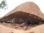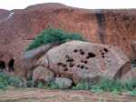 Difficile de trouver un article sur l'Australie sans voir le théâtre de Sydney, un kangourou ou le rocher d'Uluru, véritable emblème de cet immense pays. Ce monolithe de 3,6 km de long pour une hauteur de 348 m n'affiche en surface qu'un tiers de sa masse, à la manière des icebergs. C'est en fin d'après-midi que le soleil, toujours présent (sauf le jour de la rando ci-dessous !) donne au rocher ses plus belles couleurs. Ce n'est pas le plus gros mais le plus connu d'Australie. De nombreux sites bordant le monolithe sont sacrés pour les aborigènes et interdits aux visiteurs. Il est également interdit de photographier certains espaces de ces lieux sacrés sous peine de forte amende.