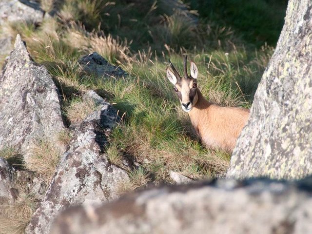Ce n'est qu'en 1956 que quelques chamois de la Forêt Noire ont été réintroduits dans les Vosges en coopération avec l'Allemagne, toute proche. Depuis cette remise en place sur les pentes du Markstein et du Grand Ballon, ils se sont multipliés, parfois trop vite par manque de prédateurs naturels. La réintroduction du lynx n'aura pas aussi bien fonctionné. Ce n'est donc pas un exploit que de les trouver dans les rochers escarpés du Hohneck ou du Soitzkoepfe. On peut même en voir en descendant de voiture au parking du Hohneck et en marchant vers la table d'orientation. Mais cette quête peut très bien s'agrémenter d'une magnifique randonnée, un peu difficile mais traversant les paysages splendides des Vosges.