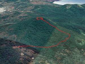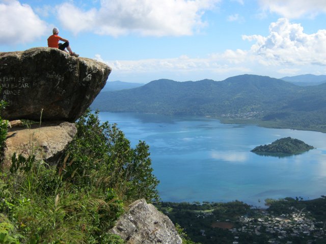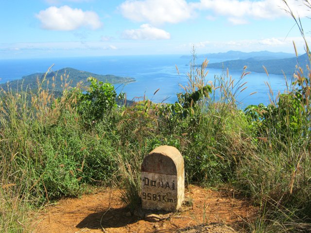Avec les belles plages de Mayotte et souvent le plaisir de nager avec les tortues, on n'a pas toujours le temps de randonner longuement sur l'île. Pourtant, depuis de nombreuses plages du Sud, on voit très bien dépasser cette pointe impressionnante en pleine forêt. Avec ses 593 m d'altitude il pourrait paraître banal mais il faut au moins une fois en atteindre le sommet. Outre l'effort physique intense qu'il faudra déployer pour atteindre la borne indiquant Dubaï à 9581 km, on pourra aussi profiter des courants d'air frais durant l'observation de la côte. Ce panorama à 360° sans végétation permet d'admirer une grande partie du Sud de Mayotte, de ses côtes découpées et des petites bourgades portuaires aux maisons recouvertes de tôles. Quelques hauts ou bas-reliefs laissés par la légion étrangère rappellent qu'ils sont responsables en partie de ce tracé presque rectiligne où les pentes dépassent parfois les 70°. Un légionnaire à l'entraînement n'a que faire des lacets qui rallongeraient sa mission ! Un amusant chalenge pourrait consister à monter sans mettre les mains. En revanche, c'est la chute assurée si on ne les emploie pas à la descente. L'aller-retour étant court, il est inutile de se charger d'un sac trop lourd. De la boisson et une barre de céréales suffiront, et bien évidemment, l'appareil pour immortaliser le cliché sur le rocher dominant le vide.