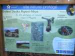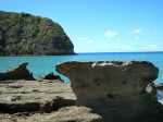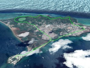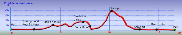 La randonnée qui fait le tour complet de l'île débute au port. La traversée par le ferry est rapide et agréable. Elle permet de prendre un peu d'air frais du large avant d'affronter les grosses chaleurs durant la marche (Photo 1). Une fois débarqué, prendre le Boulevard des Crabes qui est la route principale menant à l'aéroport. Repérer au passage la mangrove à gauche qui se visite par un sentier en caillebotis qu'on garde pour la fin de la boucle. Au carrefour du Four à Chaux, proche du marché couvert de Labattoir, emprunter la rue du Four à Chaux puis la Rue Manga Magari pour remonter tranquillement la longue route des Badamiers. La traversée des petites villes permet de mieux connaître les styles d'habitations ou de commerces. Les routes sont souvent encombrées de détritus ou de carcasses de voitures et l'on voit difficilement les habitations. Plus on monte et plus la ville ressemble à un village avec ses cases modestes, ses clôtures en tôle ondulée ou en feuilles de cocotier (Photo 2). Lorsque la route oblique à gauche, poursuivre sur la Rue Sim puis emprunter le chemin du lac, bien indiqué. La verdure l'emporte largement sur l'habitat (Photo 3). Le sentier est facile à trouver dans le virage en haut de la côte. Comme très souvent sur l'île, un grand panneau pédagogique présente les points forts de cette petite île (Photo 4). L'arrivée au lac est impressionnante et le panorama magnifique (Photo 1). La couleur très particulière de l'eau incite très peu à descendre vers les berges pour se baigner (Photo 6). On pourrait penser que le souffre va tuer les plantes mais c'est l'inverse qui se remarque. Plus on approche des berges et plus la végétation est luxuriante (Photo 7). Le tour du lac emprunte le bord du cratère donnant l'occasion de marcher sur une bande de terre étroite entre le lac et l'océan à 80 m d'altitude (Photo 8). On domine la mer de près de 100 m par endroits et les panoramas sur l'île et le chef-lieu sont nombreux (Photo 9). Le cheminement s'effectue presque à plat sur un sentier ressemblant souvent à une piste (Photo 10). Quelques kiosques permettent de se mettre à l'ombre afin de se rafraîchir un peu. Le tour du lac s'effectue donc sans difficulté et on parvient très vite aux premiers points de vue vers Moya et son discret lagon (Photo 12). Plus loin, on ne se lasse pas d'admirer la zone rocheuse des plages de Moya en essayant de deviner la forme des cratères emportés par la mer et l'érosion (Photo 13). Ce point de vue exceptionnel permet également de voir la longue plage ou les falaises en-dessous de la Vigie (Photo 14). De discrets sentiers de pêcheurs descendent vers la mer. En prenant bien son temps et en fixant l'eau transparente, il est fréquent de voir une tortue remonter à la surface pour respirer. Le sentier qui rejoint la plage de Moya longe le rempart puis descend assez rapidement les 100 mètres de rempart. Un autre sentier, très près du belvédère (voir carte) descend encore plus violemment vers la mangrove qu'on aperçoit au pied de la falaise. Attention, le sentier est très technique et tout le monde n'aimera pas l'emprunter. Il finit dans les arbres bordant la plage où l'on tombe immédiatement sur des lieux de ponte de tortues vertes (Photo 17). On rejoint aussi un platier de corail sur lequel s'installe une belle mangrove (Photo 18). L'endroit est idyllique et mérite les heures que viennent y passer les habitants de la région. Les falaises de Moya sont blanches et trouées de toutes parts (Photo 21) alors que les plages sont recouvertes de traces de tortues venues pondre durant la nuit. Après une baignade, un moment de repos ou une plongée on attaque la petite pente qui mène à la Vigie en traversant de grandes zones de culture du manioc ou d'ananas (Photo 23). On s'élève rapidement sur des pentes parfois un peu fortes mais les paysages, quand on se retourne, viennent compenser l'effort (Photo 24). Une fois la Vigie passée et la route rejointe, on peut redescendre vers Labattoir par la piste et la route à droite ou poursuivre sur le GR en tournant à gauche. C'est la meilleure manière de bénéficier de beaux points de vue sur l'océan ou l'aéroport. La fin de la boucle s'effectue de l'aéroport au port mais de nombreux taxis proposeront leurs services pour des prix très corrects si les jambes commencent à fatiguer. Sinon, on retrouve l'habitat classique sous les grands arbres (Photo 26). Après l'aéroport et le rond-point du Four à Chaux, ne pas manquer de terminer cette longue boucle par une dernière balade dans la mangrove sur un sentier spécialement aménagé (Photo 27). Une occasion de voir de près de petits palétuviers en train de naître de la graine très longue fichée dans la boue (Photo 28). Attention : se renseigner sur les horaires de bac afin de ne pas manquer le dernier même s'ils sont nombreux et fréquents en direction de Mamoudzou.