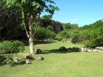 On estime à près de 300 000 le nombre de tortues vivant à Rodrigues au début du 18ème siècle. En moins de 100 ans, plus aucune carapace ne se déplaçait sur cette petite île isolée de tout. Le premier prédateur de la planète avait accosté sur ses rives et venait régulièrement faire le plein de viande et de graisse. François Leguat a tout d'abord réintroduit deux espèces avant de tenter de sauver une tortue de Madagascar subissant le même sort que leurs cousines de Rodrigues en 1750. Cette courte balade débute à l'aéroport pour qu'elle puisse porter le nom de randonnée. On peut ainsi visiter une zone assez sèche en ne marchant que 3 kilomètres. Cette visite peut même s'envisager un jour de départ en après-midi en se rendant à l'aéroport 4 heures avant l'heure de convocation. La randonnée est sans grand intérêt mais les visites valent la peine de prendre son temps. On visite tour à tour une zone de reboisement en espèces endémiques, une réserve de tortues et des grottes, phénomène assez rare dans cet hémisphère. La plantation, lorsqu'elle sera terminée comportera 300 000 pieds de plantes endémiques ou indigènes chargées de repeupler toute la zone de l'Anse Quitor. Le parc à tortue n'a pas réussi à réintroduire la tortue originelle qui a totalement disparu. En revanche, on rencontrera la géante d’Aldabra (Dipsochelys elephantina), la tortue araignée de Madagascar (Pyxis Arachnoides oblonga) et la tortue étoilée du sud de Madagascar (Astrochelys radiata). On visite d'abord les pouponnières et plus loin la vallée qui abrite les adultes qui vivent ici en liberté dans le Canyon Tiyel qui n'est qu'un effondrement du toit des grottes qui se trouvaient là il y a quelques millénaires. La grotte Tamarin se visite sur une distance de 600 mètres. On rencontre comme toujours les concrétions de ces cavités calcaires façonnées par les eaux d'infiltration. Rien à voir avec la Dordogne ou l'Ardèche mais le détour vaut la peine, ne serait-ce que pour être au frais durant une petite heure. L'île étant d'origine volcanique, il n'y a pas de calcaire naturel. Ces grottes ont issues d'amoncèlements tassés de sables riches en débris de coquillages et perforés plus tard par les eaux plus acides.