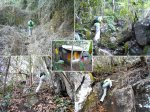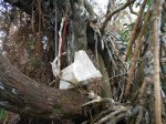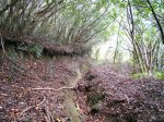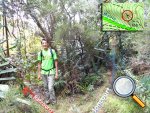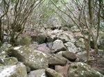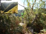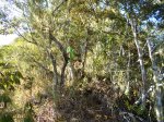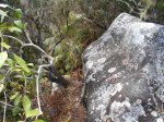 Depuis le sentier Joncourt, après avoir passé une longue portion de jamrosats sombres puis longé une ancienne piste qui se termine sans transition (comme elle a commencé), marcher une trentaine de mètres pour arriver à un grand choca sur la gauche et un discret embranchement. Bifurquer à gauche après le choca et marcher en sous bois pour remarquer rapidement des traces d'une ancienne piste couverte de végétation. Plus loin, cette piste est très visible (Photo 23). Sur la droite, repérer les rochers du Bras Marie et entamer la descente en rive droite de la rivière à sec.