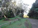 La randonnée débute au croisement de la Route Forestière des Tamarins, de la Piste Bolon et de la Piste Bernica. Partir à droite et suivre la large piste Bernica à l'abri des tamarins qui la bordent. Les nombreux passages de camions ont enlevé toute trace d'herbe sur la première partie. On tombe rapidement sur une sculpture rougeoyante réalisée dans un tronc de tamarin (Photo 1). Sur le bord de la piste, d'autres troncs de cryptomerias empilés sont moins glamour mais sur de courtes distances (Photo 2). Plus loin, le sol est herbeux, humide le matin car le soleil y arrive plus tardivement. L'hiver, le givre blanchit la piste produisant des craquements sous la semelle (Photo 3). La piste, qui devient de plus en plus sinueuse, coupe quelques sentiers de descente pour VTT. Le relief est quasiment plat et la marche s'effectue sans efforts dans les herbes (Photo 4). On franchit sans aucun danger de multiples ravines canalisées sur quelques mètres pour faire passer la piste sur de petits ponts. Certains fonds de ravines sont rocheux et d'autres envahis de végétation. On arrive bientôt à la Ravine la Source qui se franchit sur un radier avant de rencontrer plus loin la Piste Forestière des Palmistes (Photo 5). Le chemin, bordé de barbelés fait des lacets et descend en pente très douce à travers jouvences et érigérons ayant colonisé les abords occupés par de grands tamarins (Photo 6). La piste est toujours aussi belle, aussi large et la marche agréable malgré les hautes herbes par moments (Photo 7). On est très proche du sentier de la Tamarinaie mais les raccourcis qui y mènent sont très envahis de végétation. En revanche, les tamarins centenaires donnent envie de revenir effectuer une partie de la boucle en fin de parcours (Photo 8). A la fin de la piste Bernica, dans un lacet, prendre à gauche à la très large piste des Palmistes. Elle finit rapidement à la RF des Tamarins. Deux possibilités à partir de la RF des Tamarins : Partir à gauche pour revenir au point de départ ou à droite pour une sortie plus aventureuse.