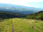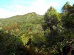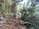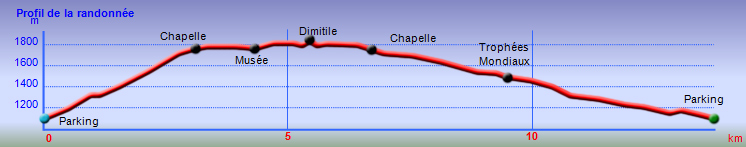 La randonnée débute à la fin de la route officielle et le début de la route réglementée. Après le passage de la ravine Argamasse, prendre le sentier sur la gauche. Il s'enfonce dans les bois de couleurs et entame une longue montée en lacets. Le sol est un peu glissant, recouvert de racines par endroits (Photo 3) ou de marches plus ou moins hautes. Quelques roches, des jouvences et des fougères bordent le sentier. Plus on monte et plus les acacias noirs envahissent les sous-bois. Encore une trentaine d'années et il ne restera rien d'autre dans cette magnifique zone verte. Peu de points de vue ou bouchés par la végétation (Photo 4). Une montée plus forte que les autres se termine à la piste Jean Dubard près d'une pierre gravée. Le sentier borde alors la piste (Photo 6) qui permet d'atteindre plus haut le Sentier Mal au Ventre. Il devient de plus en plus agréable dans les branles verts qui se multiplient (Photo 7) et des trouées plus importantes qu'en début de montée permettent d'apercevoir les flancs boisés tout autour. Les parties glissantes se multiplient et imposent parfois de marcher sur le bord herbeux. Le cheminement est plus délicat en descente s'il a plu récemment. Après avoir coupé la route une nouvelle fois (Photo 10) près d'une petite case entourée de fleurs, les panoramas deviennent fréquents vers le Tampon et les Gorges du Bras de la Plaine. Trois beaux tamarins (Photo 11) marquent la fin du sentier de la Chapelle. Il faut alors emprunter la piste et la remonter jusqu'à la chapelle qui domine la vallée (Photo 12). Poursuivre, toujours sur cette piste et marcher jusqu'au départ d'un petit sentier bordé de balises de toutes les couleurs (Photo 14) puis jusqu'à la clôture en bois du camp Marron. Poursuivre vers le Dimitile en évitant de partir sur la gauche vers la Grande Jument. La dernière montée sur des marches en rondins casse bien les jambes(Photo 18). Le panorama au sommet fait oublier ce court effort. La table d'orientation (Photo 19)permet de mieux situer les villages et sommets qui s'étendent à 220 degrés du Tampon au Bonnet de Prêtre et Palmiste Rouge. Le spectacle mérite une longue halte avant d'entreprendre la descente. Au premier croisement, prendre à gauche et rejoindre le bord du rempart pour le longer environ 750 mètres et profiter de nouveaux panoramas sur le cirque avant de bifurquer vers le musée. Comme tout le reste du circuit s'effectuera en descente sur piste, ne pas hésiter à prendre son temps pour visiter les lieux et lire les multiples pancartes explicatives sur la vie des esclaves, des révoltes, des chasseurs, du marronnage ou de Dimitile (Photo 17). Après la visite, emprunter la piste très proche et ne plus la quitter jusqu'au parking du départ. Elle est toujours large et de bonne qualité (Photo 23). Elle serpente dans de belles vallées verdoyantes ou des forêts de bois de couleurs. Les points de vue sont plus nombreux que sur le sentier utilisé dans la montée. Certaines portions particulièrement pentues sont bétonnées (Photo 25). On retrouve les croisements avec le sentier de la Chapelle à plusieurs reprises. La piste fait parfois de longues boucles pour revenir presque au même endroit. Repérer, pour une prochaine balade, le sentier Mal au Ventre puis celui des Trophées Mondiaux qui empruntent des parties communes. A un moment la piste remonte légèrement mais replonge aussitôt vers la Ravine Argamasse ((Photo 26), fin de la boucle.