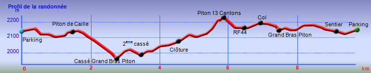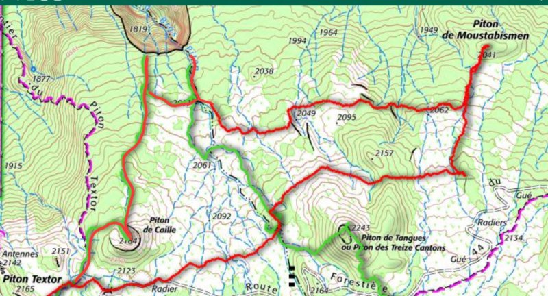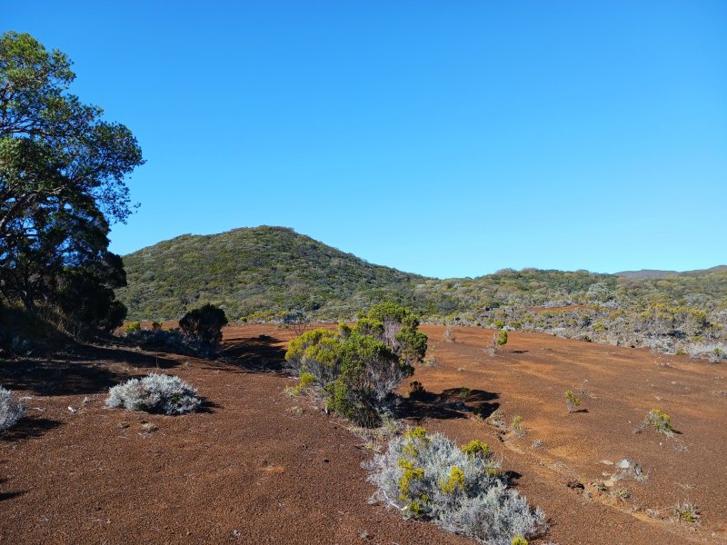 La région du Piton Textor est parcourue d'une dizaine de sentiers qui se croisent en tous sens. Un seul regard à la carte démontre que cette zone semi-désertique située à plus de 2000 m d'altitude peut se parcourir sans danger en raison de ses faibles dénivelés et des plantes rabougries qui la recouvrent. Plusieurs pitons de la région, totalement recouverts de végétation, dépassent de cette plaine et donnent l'impression d'être inaccessibles quand on les regarde. C'est compter sans les dizaines de vaches qui parcourent ces immenses étendues depuis des années et qui ont multiplié les tracés commencés par les hommes et l'ONF. Il y en a tellement que le GPS est fortement conseillé afin de les suivre au mieux mais aussi de se créer une boucle qui passera par les différents points caractéristiques. Paradoxalement, cette végétation poussant par touffes, peut parfois être importante et il ne faut jamais chercher à la pénétrer. Se contenter de contourner les bosquets quitte à faire de légers détours. La trace fournie avec cette fiche propose un circuit totalement reconnu et empruntant à chaque instant les parties du sol les plus praticables. C'est pourquoi, elle semble faire autant de petits détours qui ne sont que les contournements de ces touffes de végétation. Il faudra également utiliser les fonds de ravines qui proposent de magnifiques natures mortes, principalement le Grand Bras Piton qu'on rencontre à trois reprises. Il va sans dire qu'on n'entreprend jamais une telle boucle seul ou par jour de brouillard.