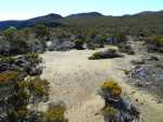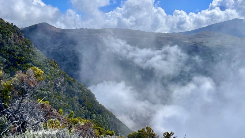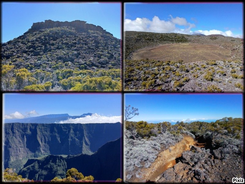 Voici un nouveau hors sentier pour visiter les alentours du Morne Langevin jusqu'au Piton Rouge des Remparts. La sortie du Morne Langevin permet de suivre un agréable sentier au nord pour rejoindre le point de Vue sur le Sud et la vallée de Grand Pays. Un autre sentier traverse le morne du Sud au Nord pour rejoindre la Caverne de Cotte. Mais ce sentier est fermé officiellement par arrêté et n'est plus emprunté depuis longtemps. C'est dommage car les paysages traversés sont très agréables ; l'éboulis de Mahavel a laissé de grosses séquelles et le sentier qui borde la falaise emportée passe près de fissures importantes donnant à penser que des roches continueront à tomber 1300 mètres plus bas. Comme il a déjà été maintes fois écrit sur ces pages, cette fiche n'est en rien une incitation à parcourir l'itinéraire proposé et chacun prendra ses responsabilités. L'ancien sentier est encore bien visible, le hors sentier est sans danger et les paysages traversés comportent peu de végétation. La meilleure solution pour éviter tout danger près de l'éboulis est d'en contourner les bords en s'éloignant d'une cinquantaine de mètres dans les terres. Passé cet écueil, ce sera un vrai plaisir de fouler des terres où même les braconniers ne viennent pas puisque aucun gibier ne vit à ces altitudes, excepté quelques lièvres. Il faut s'abstenir de grimper le Piton Rouge des Remparts en venant de cette direction en raison des grandes plaques tombées au sol qui rendraient l'escalade dangereuse. Le Puy du Pas des Sables n'a pas toujours de l'eau sinon les photos prises du haut du petit piton seraient plus attrayantes.