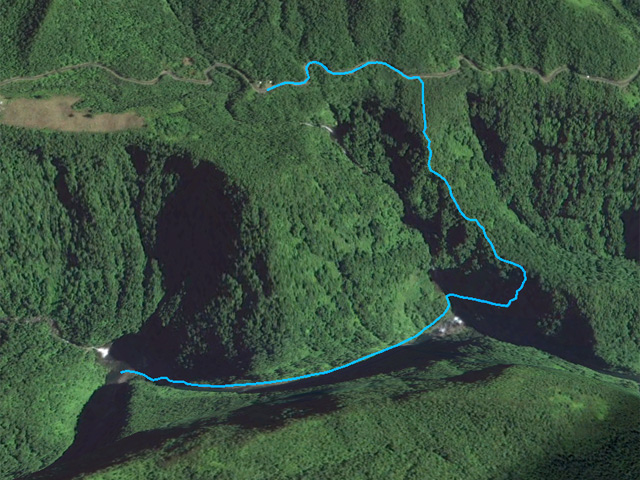 Se rendre à Saint-Benoît et emprunter le Chemin Grand Fond en direction de l'usine de Takamaka et Abondance (panneaux) - Rouler jusqu'au kiosque situé sur la droite, au sentier vers la cascade du PK12 - Stationner à gauche de la route sous un pylône électrique - Marcher vers Saint-Benoît environ 600 mètres et chercher dans le fossé le départ du sentier - Descendre jusqu'à la Rivière des Marsouins - Remonter le courant jusqu'à la Grande Cascade - Faire demi-tour par le même itinéraire.