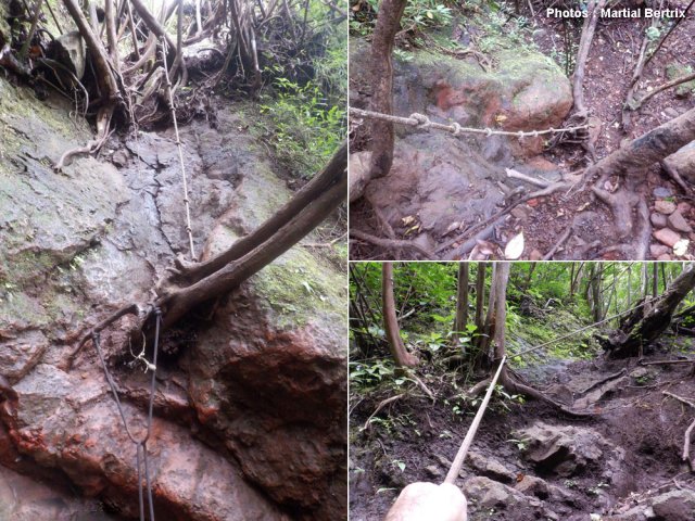 Des cordes sont installées pour passer les passages verticaux ; attention, s’il a beaucoup plu les jours précédents, la descente est très glissante et il faut redoubler de vigilance.