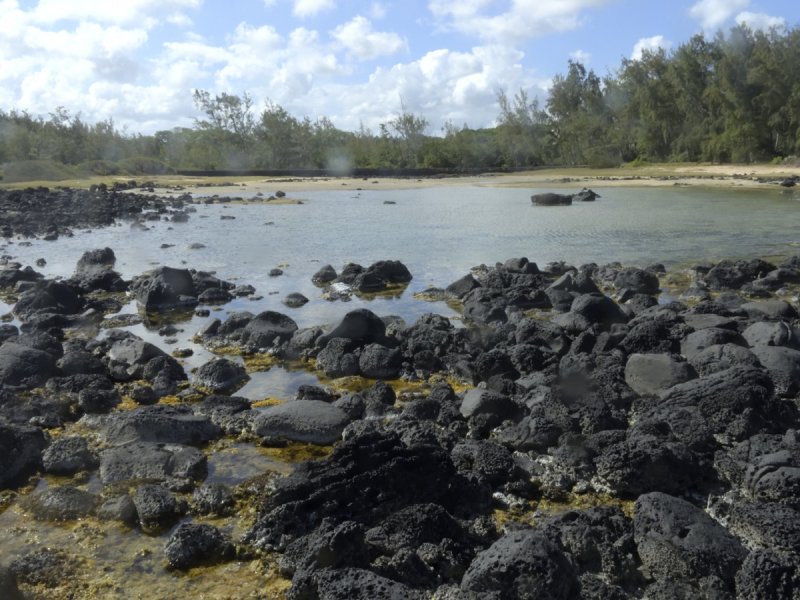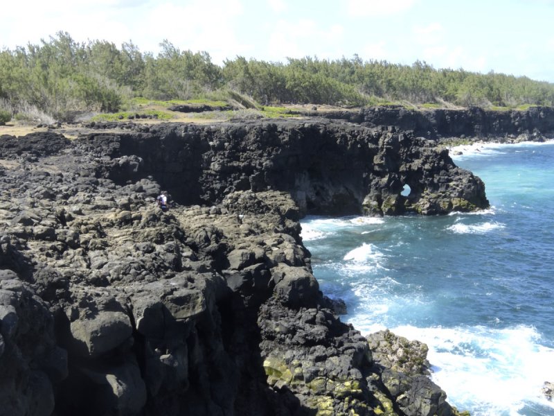 Si l'Ouest de Maurice comporte de longues plages de sable jaune ayant permis l'installation de multiples hôtels, la côte Est, comme à La Réunion, est souvent rocheuse et battue par les vagues. Un sentier côtier permet d'en découvrir les secrets en le quittant de temps en temps. On peut ainsi dénicher des falaises abruptes, des souffleurs, des grottes, des roches érodées par le vent et l'eau ou des arches naturelles comme sur cette portion de 5 kilomètres. Effectué en aller-retour, on peut alors marcher près des falaises dans un sens puis sur les pistes et sentiers au retour. Il est possible de débuter à plusieurs endroits entre Savannah, Savinia ou Virginia car des routes sommaires ou des pistes amènent au plus près des flots. De nombreuses familles mauriciennes viennent se reposer ou se restaurer à l'ombre des grands filaos. Le souffleur présent sur les cartes et qui attirait touristes et taxis a bien mal vieilli. Les effondrements et assauts de la mer en ont changé la physionomie et le long belvédère qui le bordait ne sert désormais qu'aux pêcheurs ou rares randonneurs de passage. A deux kilomètres du Souffleur, un lieu encore très visité abrite une grande arche naturelle où les familles viennent se faire photographier sur sa voûte. Il faut reconnaître qu'elle en impose mais neuf autres, beaucoup plus petites ou discrètes s'observent entre la rivière et la plage au sud du Souffleur et sur les 3 kilomètres au nord. Beaucoup d'autres sont vraisemblablement réparties dans la même zone et il faudra flâner pour les dénicher.