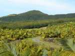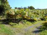 La région de Saint-Philippe produit de grandes quantités de vanille et de palmistes et lorsque l'on a traversé les plantations de la famille Bègue, on sait que ce produit de choix, le palmiste, ne manquera pas pour les fêtes. Il y en a partout, des fossés profonds jusqu'aux rochers arides et l'on marche près d'une heure au milieu de cette verdure jaunissante en prenant autant de plaisir que sur le GR. Pour avoir ce plaisir de traverser les étendues présentées de la photo 6 à la photo 10, il faut prendre contact préalablement avec le propriétaire des lieux. Si le gîte a pour vocation première d'héberger les randonneurs pour la nuit, Jim accepte cependant de servir des repas à midi, à condition d'être plus de 6, ce qui se comprend aisément quand on voit la charge de travail qui l'attend chaque jour dans les plantations.