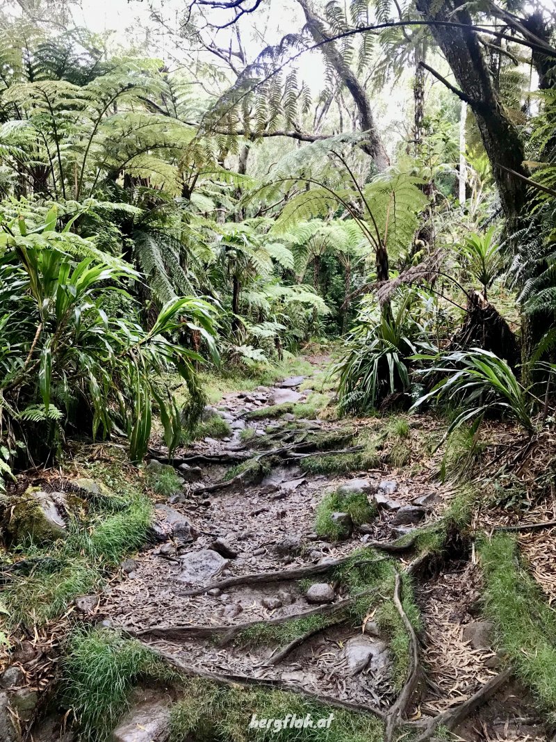 Entre le circuit très court par la piste cavalière, le sentier classique par le Gîte de Bélouve ou cette boucle plus longue, on arrive toujours au belvédère du Trou de Fer pour des paysages grandioses sur cet immense effondrement arrosé de hautes cascades. Il y en a pour tous les goûts mais il faut tout de même savoir qu'il y a de la boue toute l'année. Si le Sentier de l'Ecole Normale est un long plancher grillagé mais pourrissant qui évite de se salir, celui du Trou de Fer est est une suite ininterrompue de flaques de boue parfois profondes. En visant les racines, cailloux, bois posés au sol ou vieilles marches on peut cependant arriver au belvédère sans trop remplir les chaussures de cette boue nauséabonde qui empeste le véhicules au retour. Même les raccourcis créés pour éviter les flaques sont également recouverts. Il est conseillé de marcher avec des bâtons qui facilitent les franchissements. La brume est souvent présente dans le Trou de Fer et il faut choisir sa journée en fonction de la météo car se salir est une chose mais le faire sans rien voir peut être frustrant.