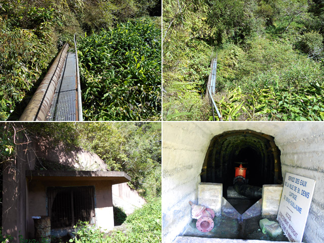 A chaque passage à l'Îlet à Guillaume, on remarque cette canalisation qui se poursuit en direction de la Roche Ecrite. Après avoir suivi la longue canalisation qui passe par la Fenêtre et frôle cet ancien pénitencier pour enfants, pourquoi ne pas continuer encore quelques centaines de mètres le long de ce même tuyau. Il va chercher l'eau dans la vallée du Bras Citron pour la transporter vers Saint-Denis. Le sentier parfois étroit, parfois très large a été mis en place à la même époque que la canalisation remontant de la passerelle du Bras Guillaume. Deux passages un peu étroits ou sur planches vermoulues peuvent ralentir mais ne comportent nul véritable danger si l'on prend son temps. Des câbles en acier rassurent grandement. Le cheminement est dans la continuité de ce qui vient d'être effectué depuis la Fenêtre. Au captage, une source d'eau claire rafraîchissante jaillit des rochers. Au retour, Il est possible d’effectuer un petit écart pour remonter le Bras Guillaume afin de rejoindre une cascade et son bassin à une centaine de mètres du gué. L'îlet à Guillaume, qui abrita un pénitencier pour enfants est un endroit de recueillement qui comporte quelques vestiges dont un émouvant petit cimetière. Malgré les recommandations de l'ONF qu'on retrouve sur les panneaux d'entrée, l'endroit n'est pas toujours aussi propre qu'on pourrait le croire. Poursuivre derrière la case en ruine pour profiter les points de vue sur la vallée profonde de la Rivière Saint-Denis qui prend sa source du côté du Gîte de la Caverne Dufour.