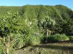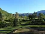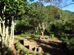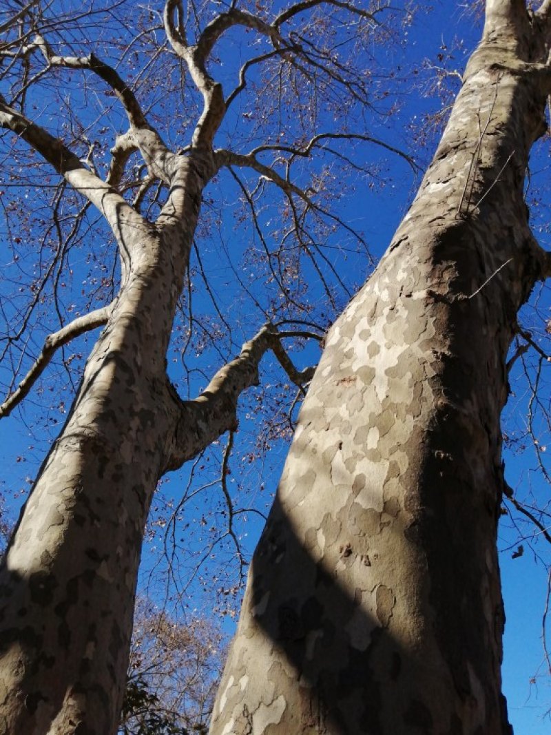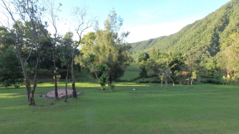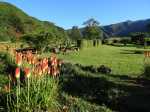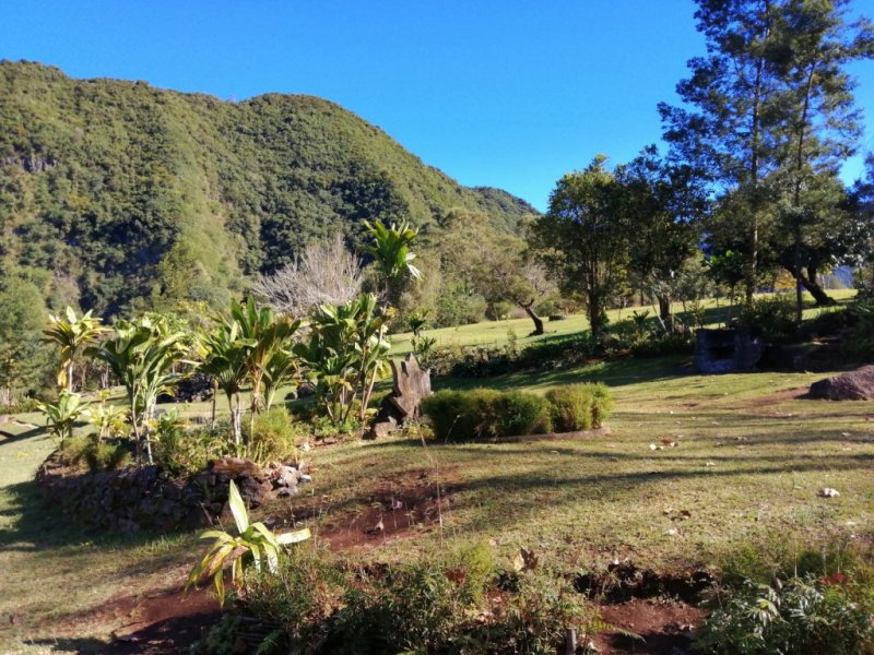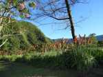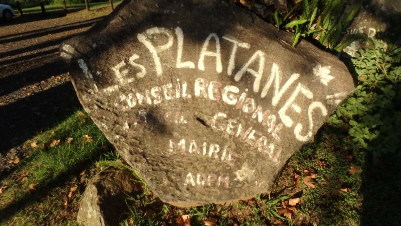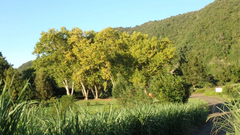 Pas de description détaillée ici tellement le circuit est court avec impossibilité de s'égarer. Il a été pratiqué en effectuant tout d'abord le tour en restant au plus près des limites naturelles de la Ravine de Bellevue ou artificielles le long des champs puis en suivant les pistes ou sentiers bordés de belles fleurs oranges, des lanternesKniphofia uvaria, une liliacée également appelée tison de Satan qui fleurissent surtout en mai (Photo 1 et 8). Au centre poussent quelques platanes qui sont à l'origine du nom du lieu (Photo 12). Ils sont bordés de beaux pieds de camélias de plusieurs mètres de hauteur qui procurent une ombre agréable (Photo 18). L'endroit est également un lieu de prière abritant un oratoire rouge où l'on s'attend à voir un grand Saint-Expédit alors qu'il est surtout occupé par des petites statuettes de la Vierge (Photo 11). L'endroit est idéal en semaine pour un bivouac et du repos entre deux randonnées dans la région montagneuse des Makes.